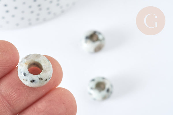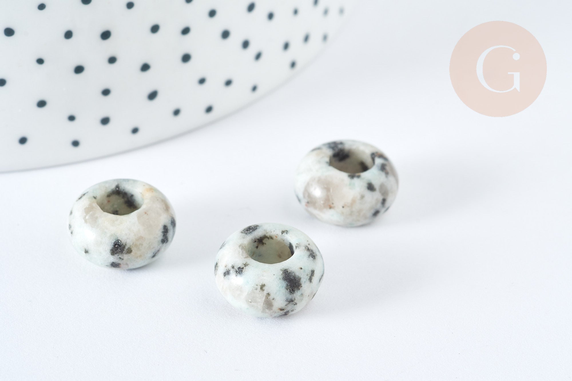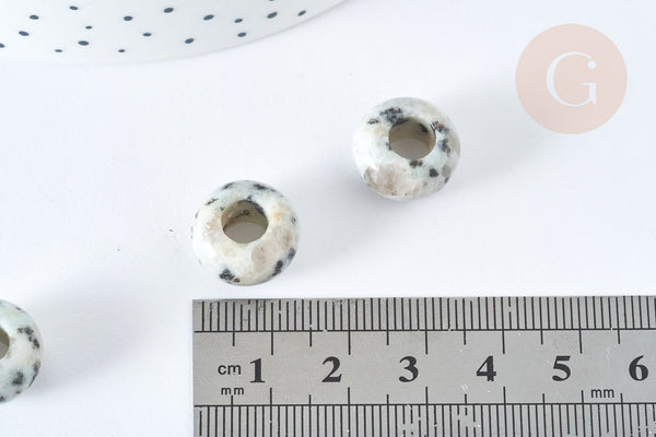 Colgante de rosquilla con rondel de cuentas de jaspe y sésamo, 14 mm, fabricación de joyas, joyería con piedras preciosas, x 2 (G7560)