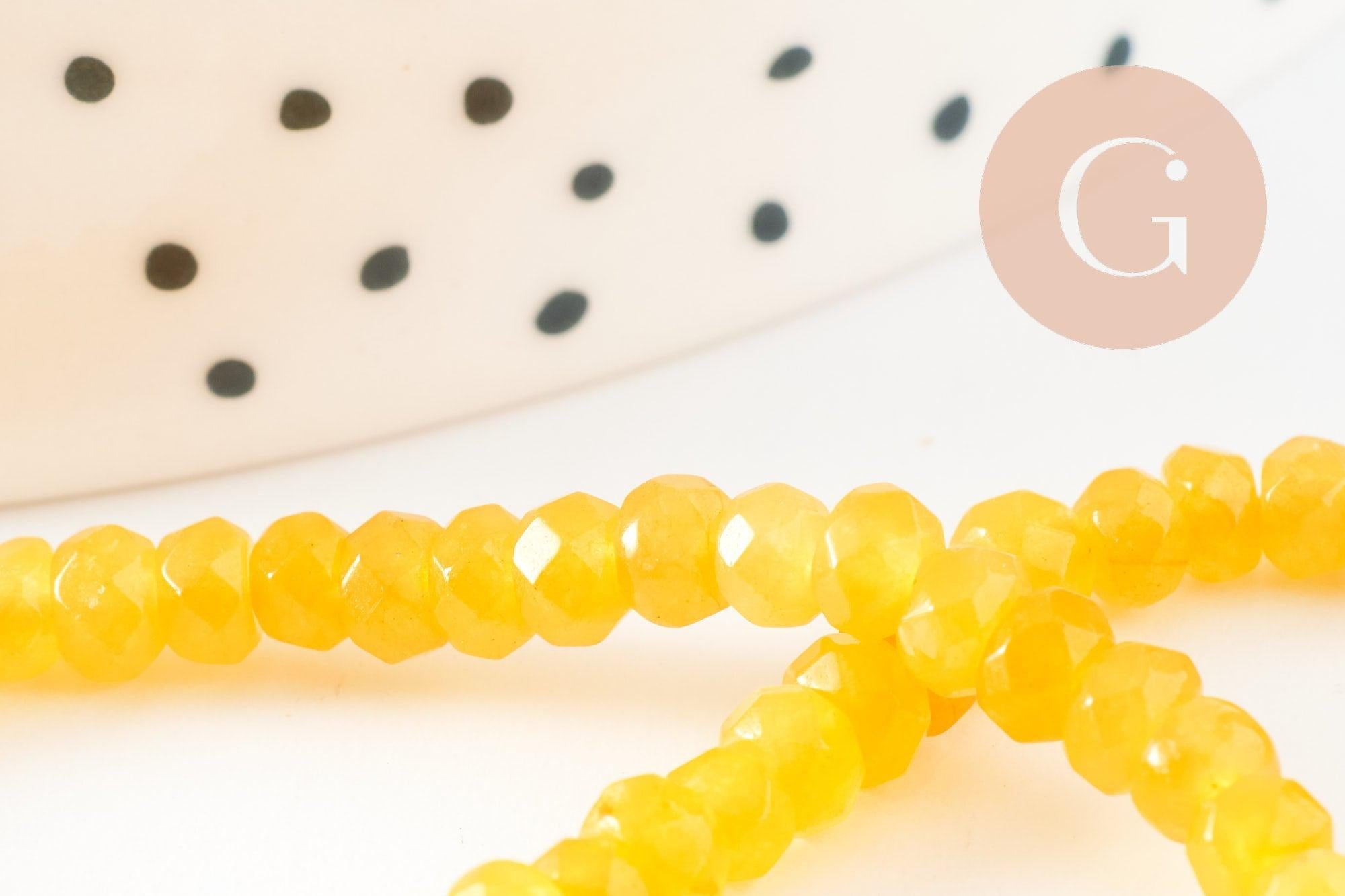 Perle abacus jade teinté jaune, pierre naturelle, jade naturel, 4x2mm,fil 39cm, x1 (G5619)