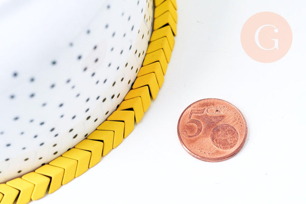 Perla de hematita sintética de color amarillo con forma de chevron, 7 mm, tira de 40 cm, x1 (G8048)