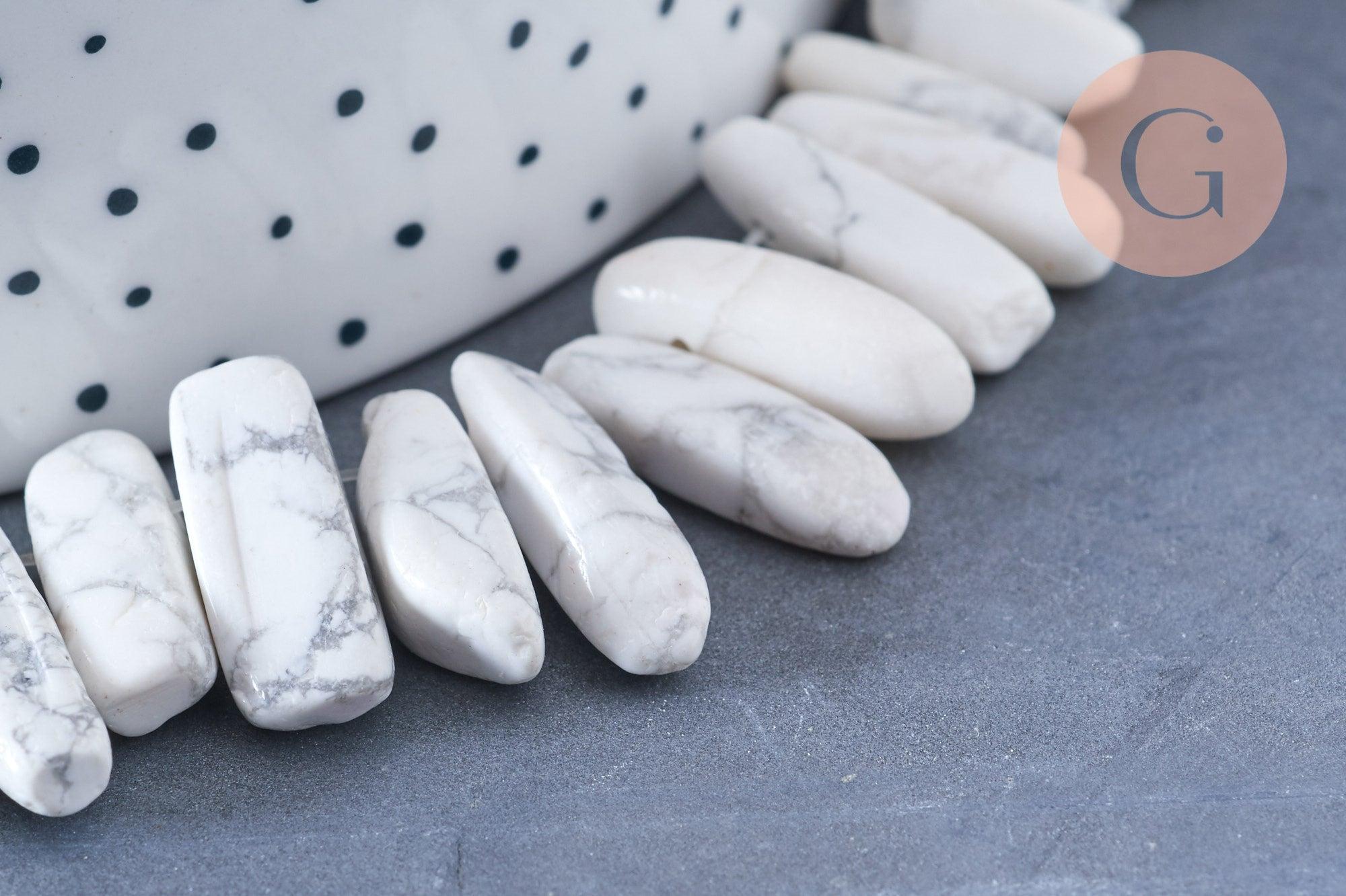 Perle ovale chips howlite blanche naturelle 12-20mm, x1 fil de 39cm (G6203)