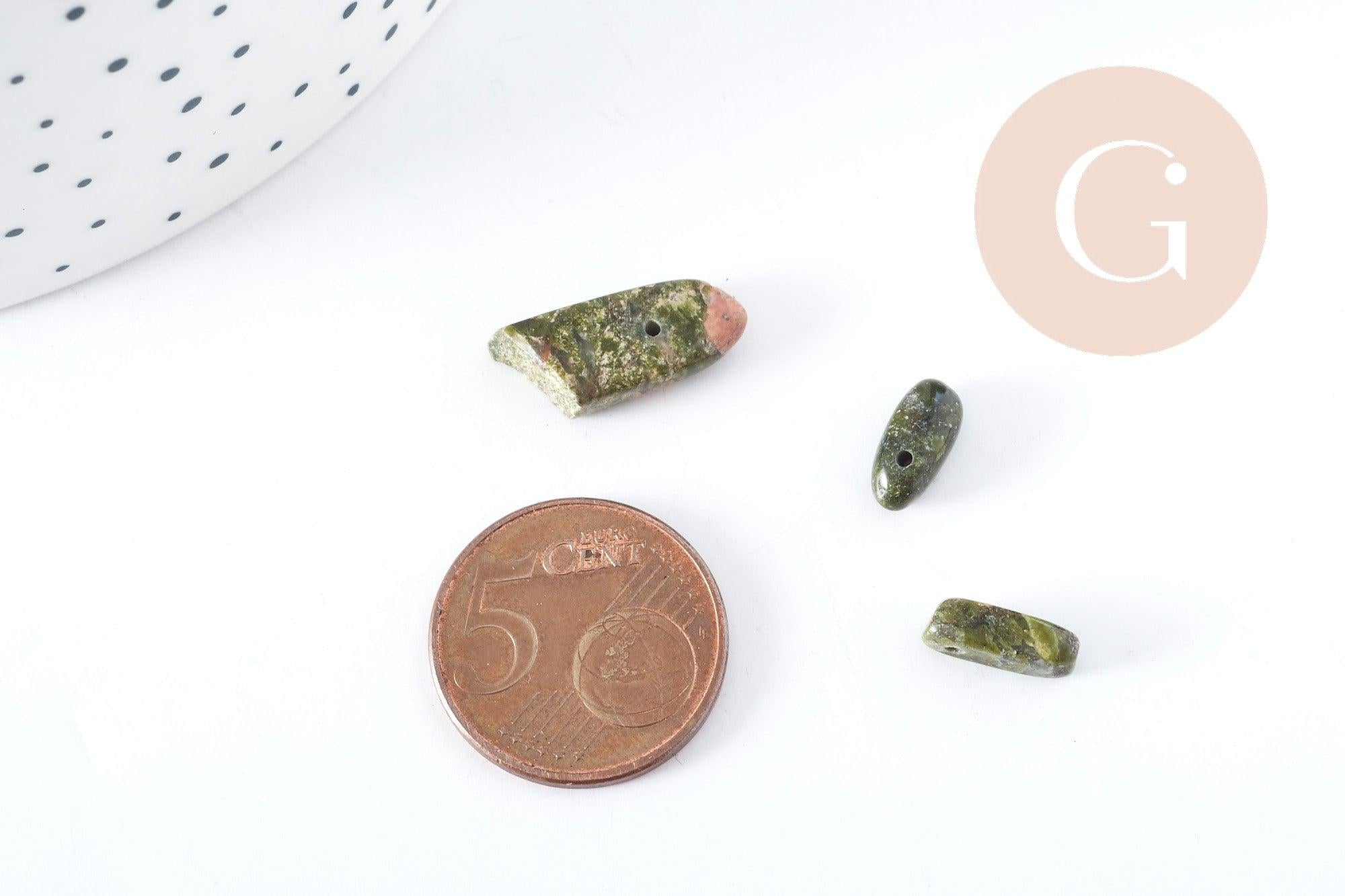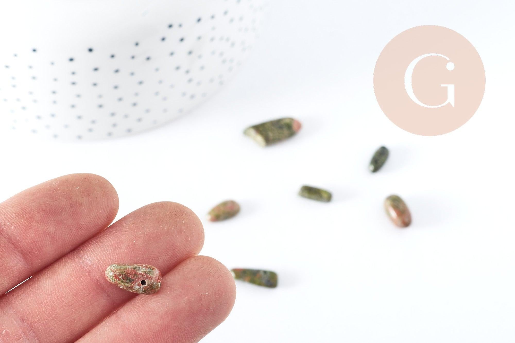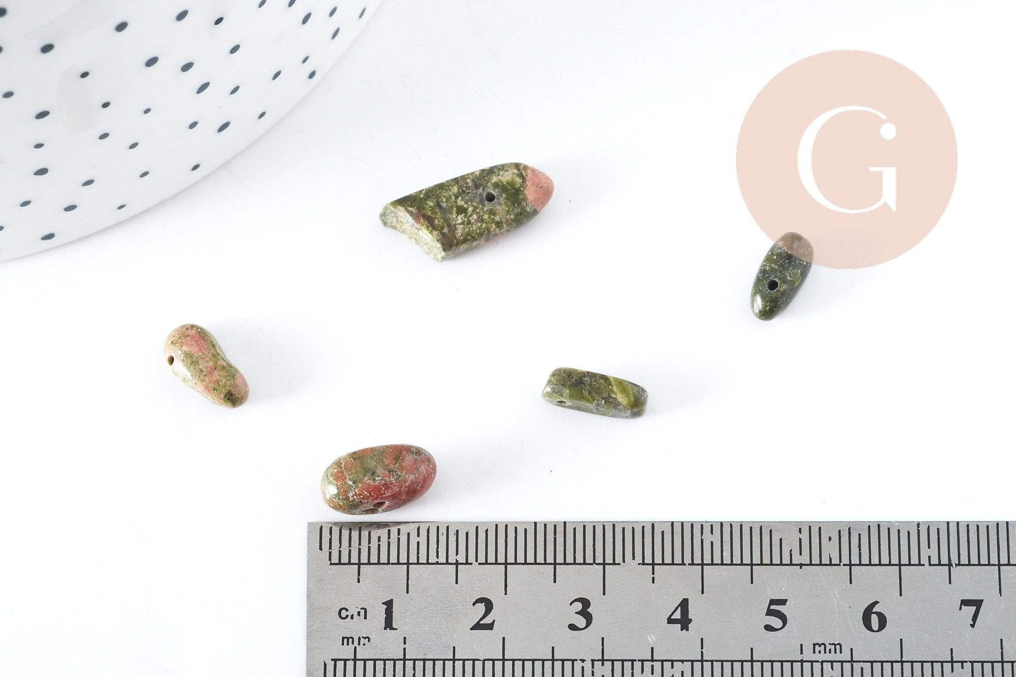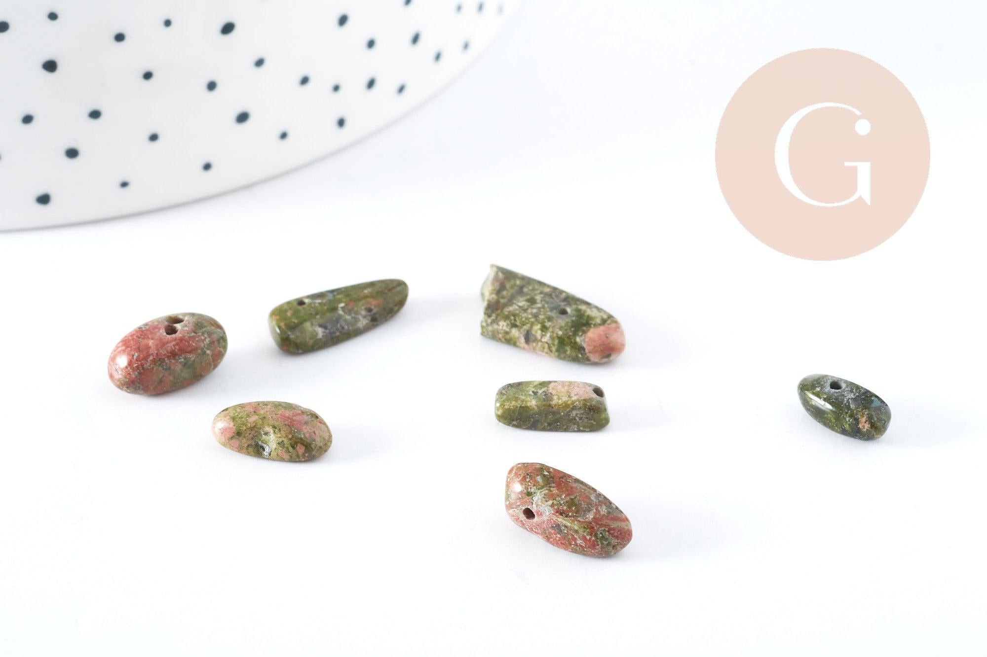 Dale un toque de suavidad natural a tus creaciones DIY con estas cuentas redondas de auténtica unakita. Una armoniosa mezcla de verde y rosa, la unakita es una piedra semipreciosa apreciada por su energía equilibrante y su estética única. Ideal para crear joyería fina y delicada.