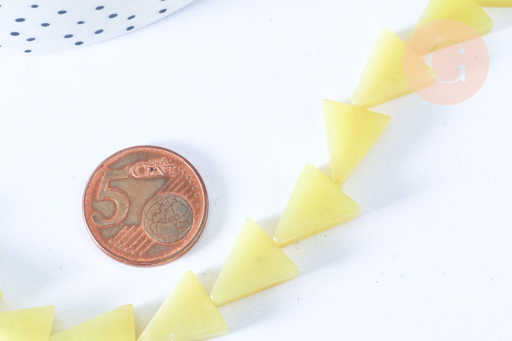 Cuenta triangular de jade amarillo, joyería de piedra natural, 14 mm, alambre de 40 cm, x1 (G7166)