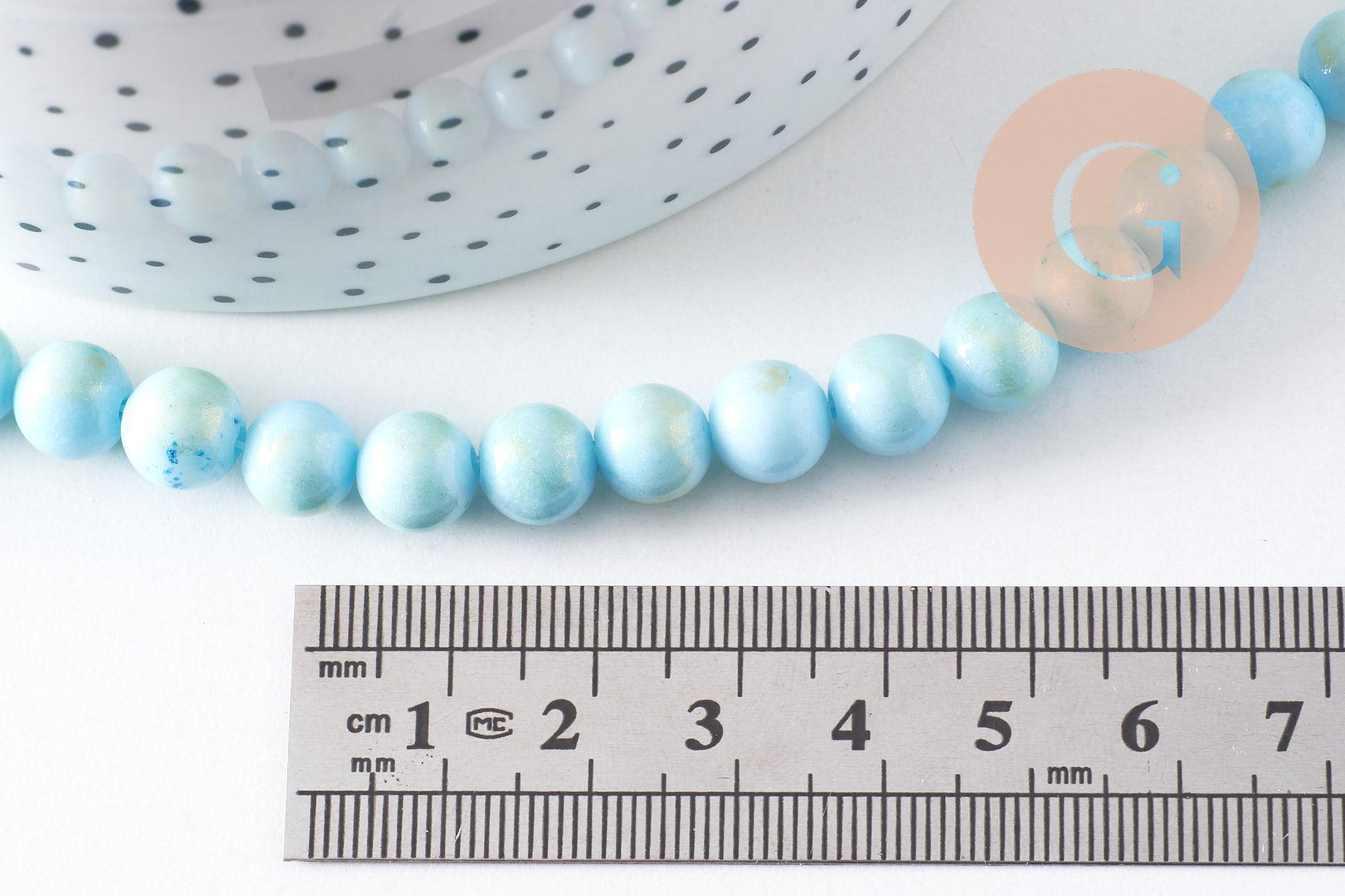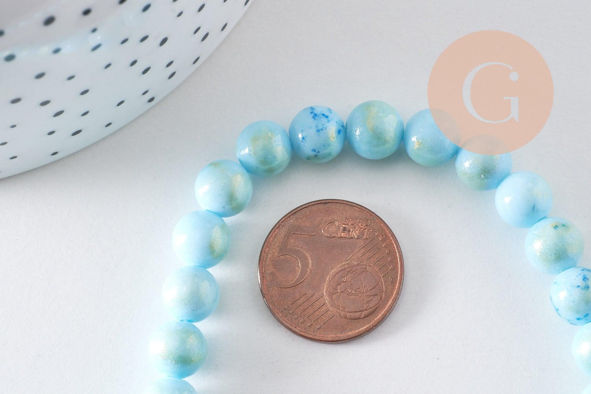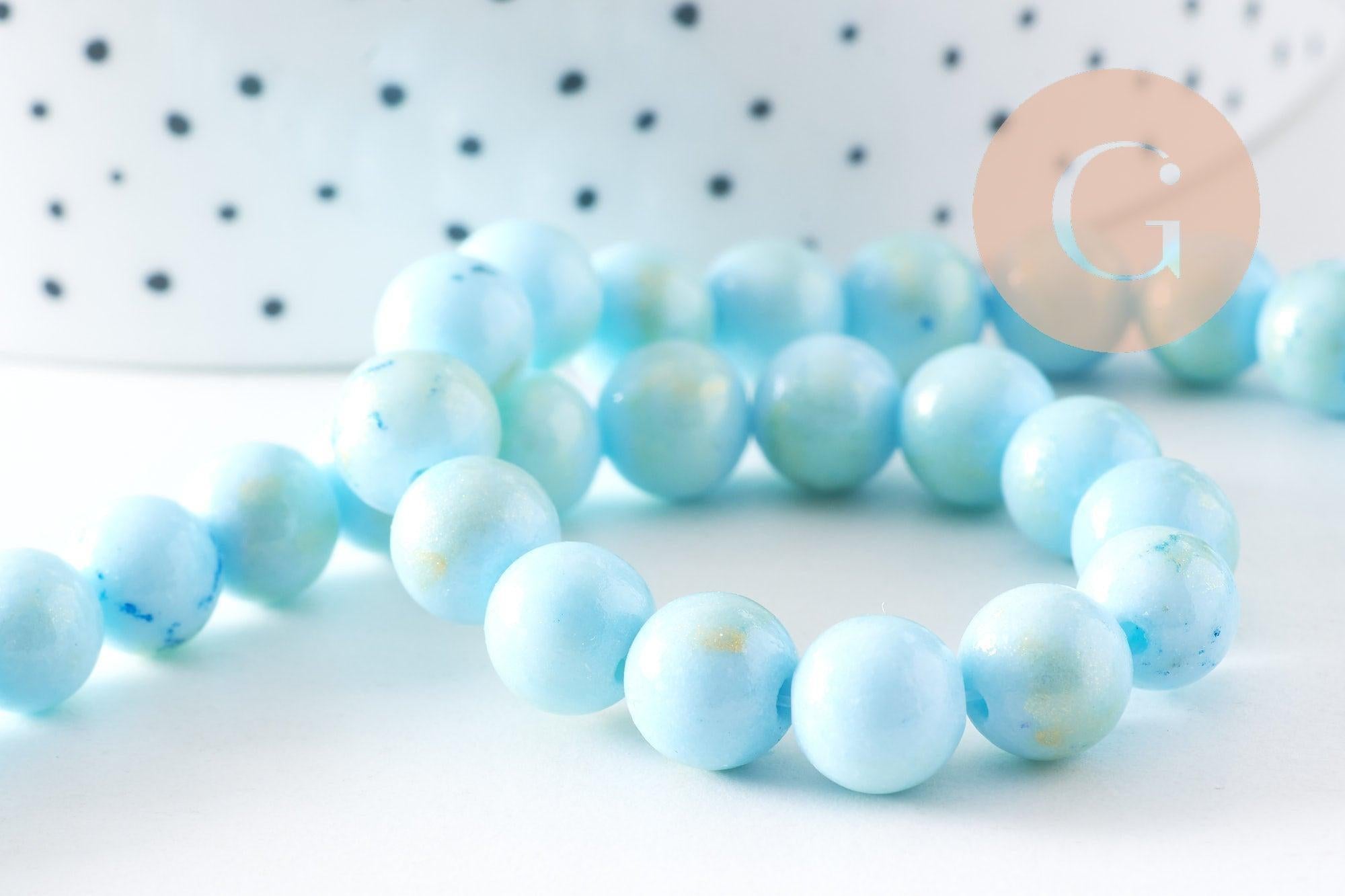 Aporta un toque de lujo y color a tus creaciones con estas cuentas redondas de jade natural en color turquesa y dorado . Su sutil brillo y combinación de colores te permitirá crear joyas refinadas y modernas.
