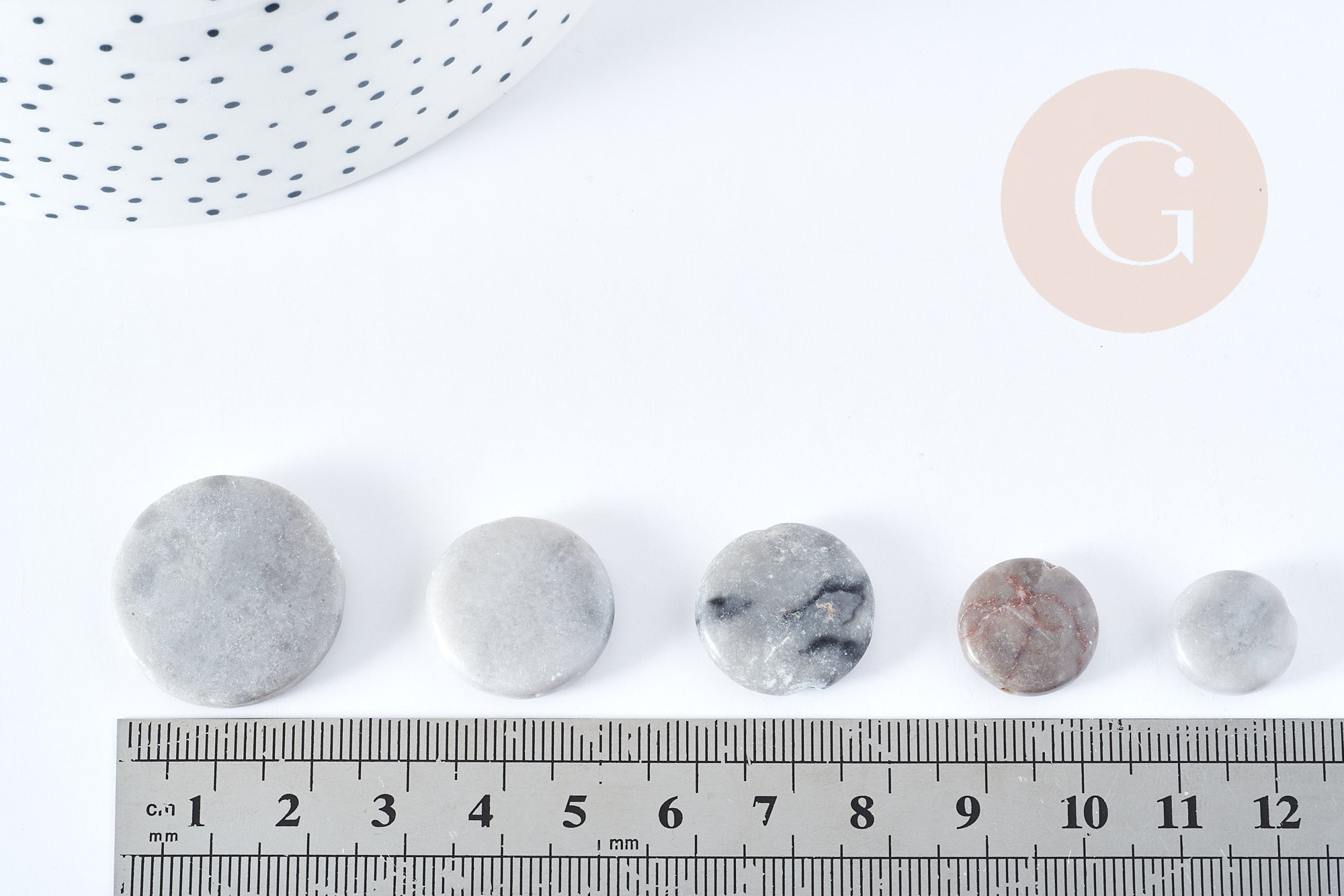 El jaspe es conocido por sus propiedades energéticas y calmantes , lo que lo convierte en una piedra natural apreciada por los amantes de la joyería de piedras. Gracias a su sutil color gris y su patrón jaspeado, estas cuentas son perfectas para todo tipo de creaciones de joyería , desde pulseras hasta collares y pendientes.