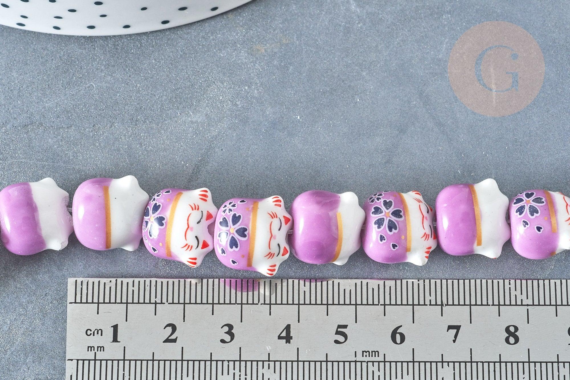 Cuenta de gato de la suerte de porcelana púrpura 14 mm, cuenta de cerámica, fabricación de joyas de animales, cuenta de la suerte, x5 G7997