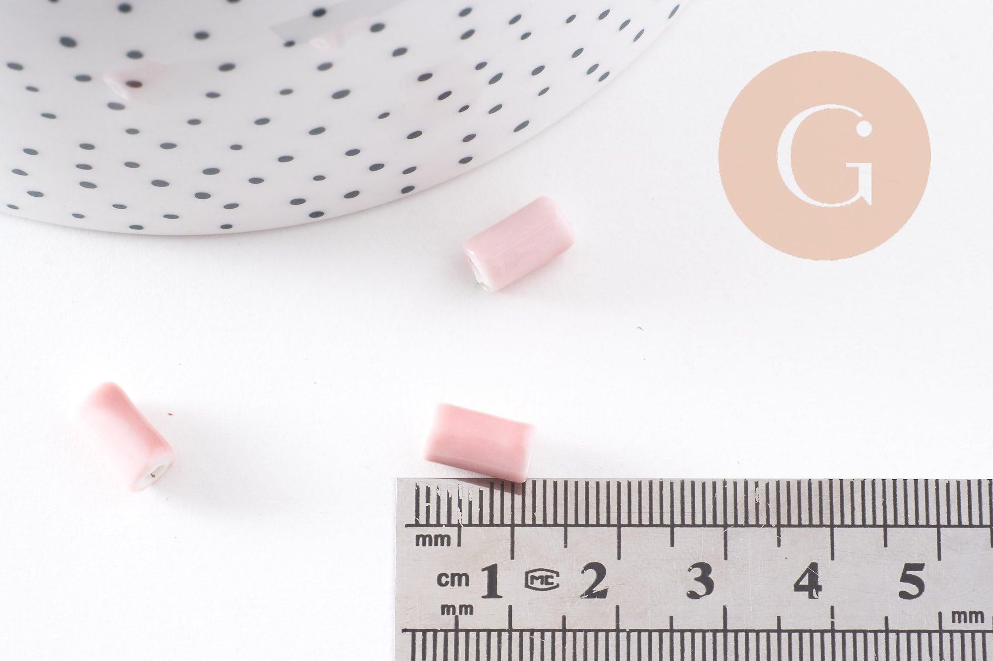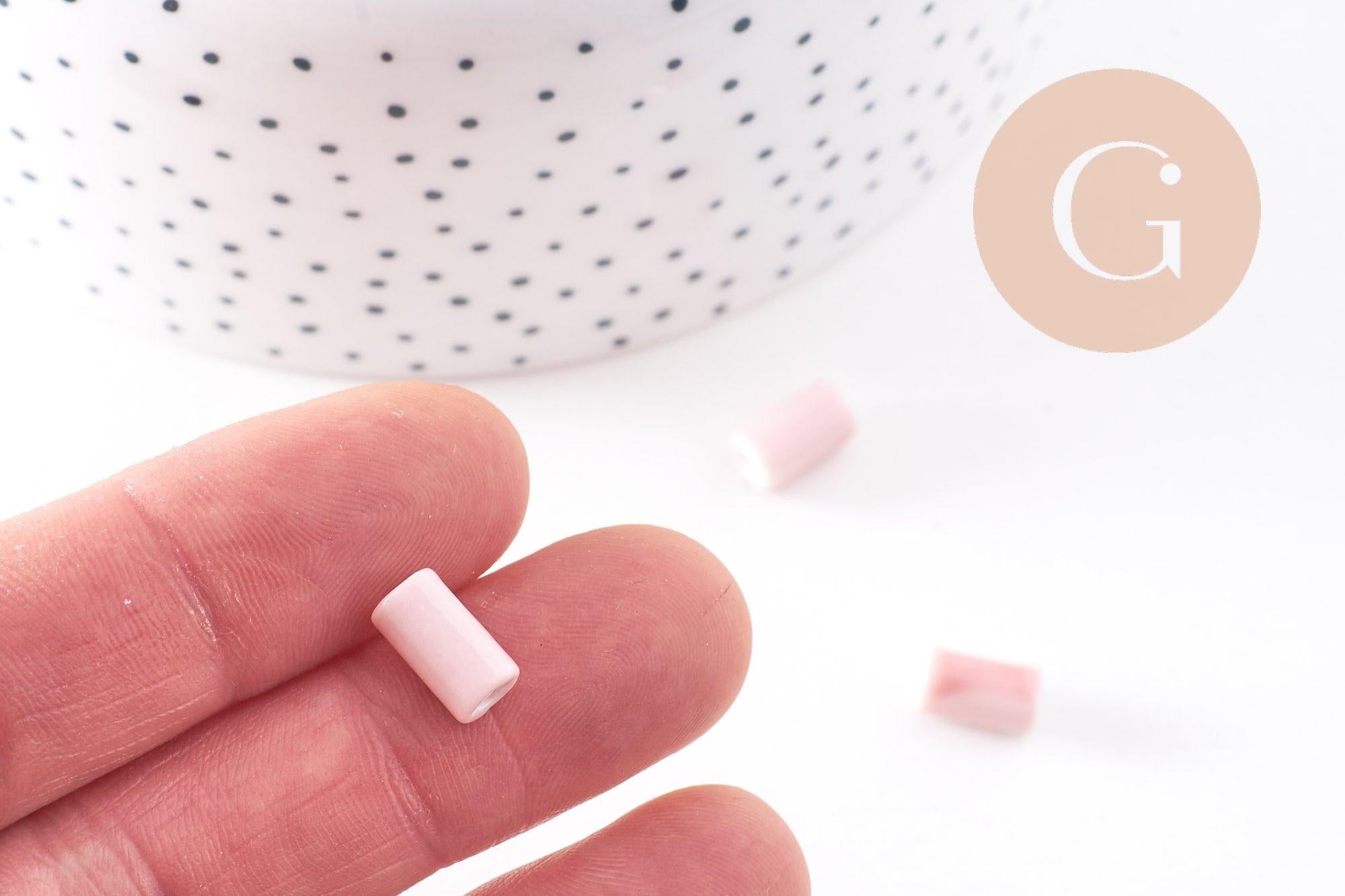 Cuenta de porcelana rosa, cuenta de cerámica, porcelana rosa claro, cuenta de tubo, creación de joyas, 10 mm, x5 G2542
