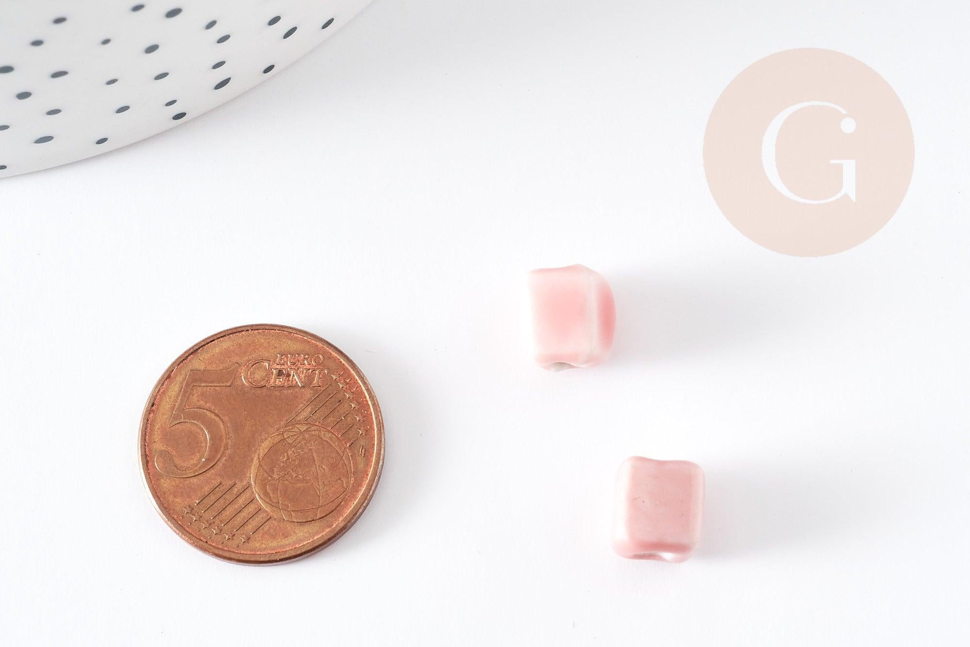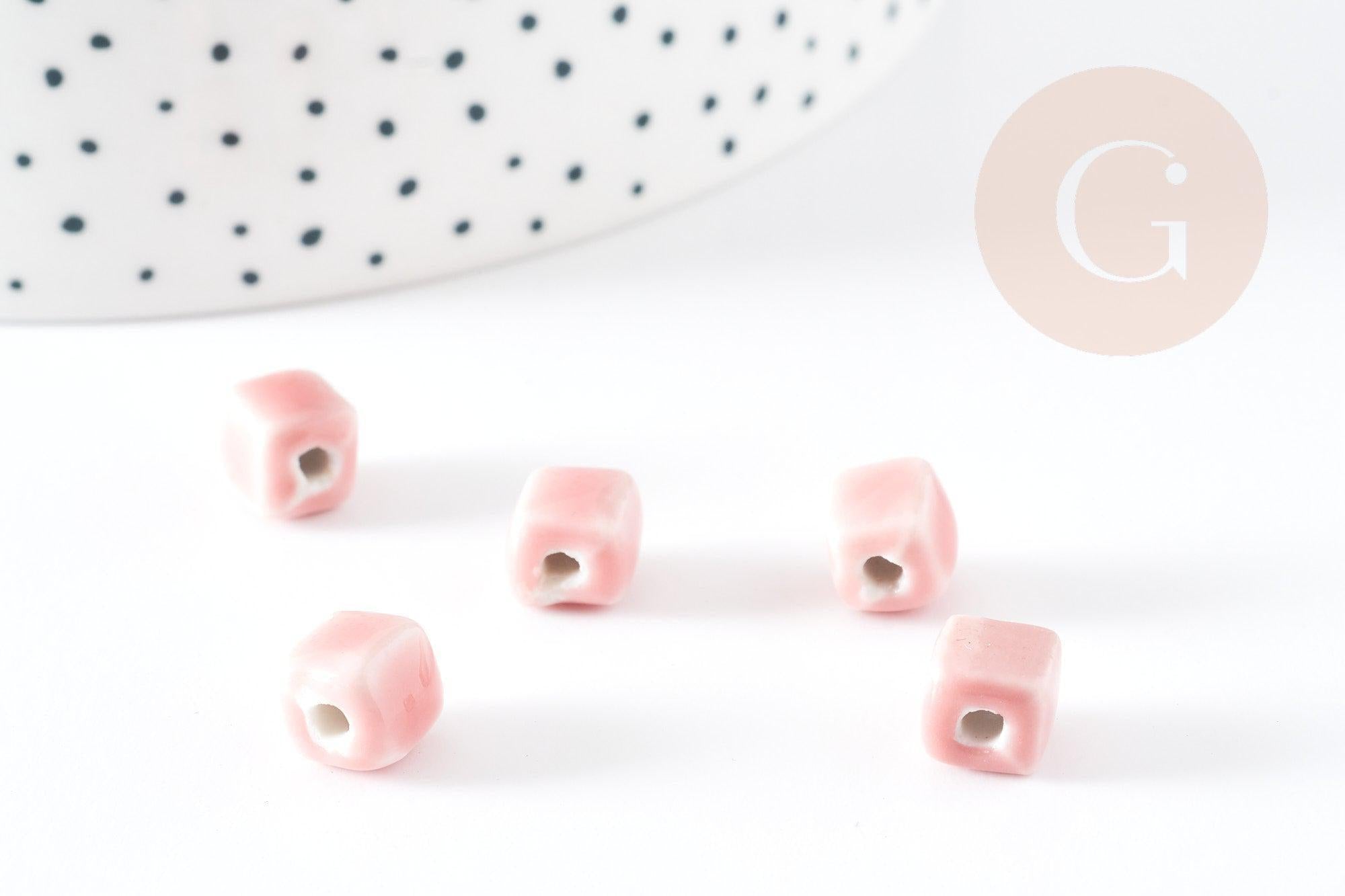 Cuentas de cubo de cerámica rosa de 8 mm, creación de joyas de cuentas de porcelana, x5 G9150