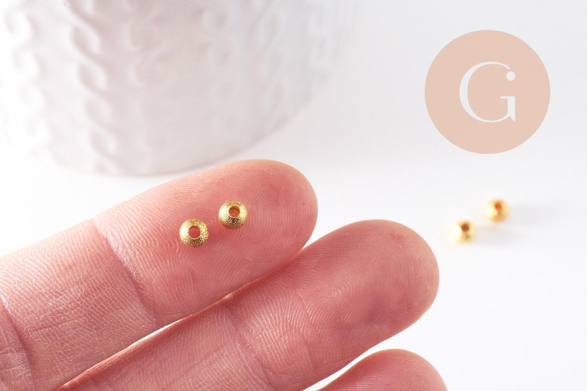 Dale un toque elegante y refinado a tus creaciones DIY con estas cuentas espaciadoras redondas de latón dorado arenado . Imprescindibles para la bisutería, aportan un acabado impecable y luminoso a tus collares, pulseras y pendientes.