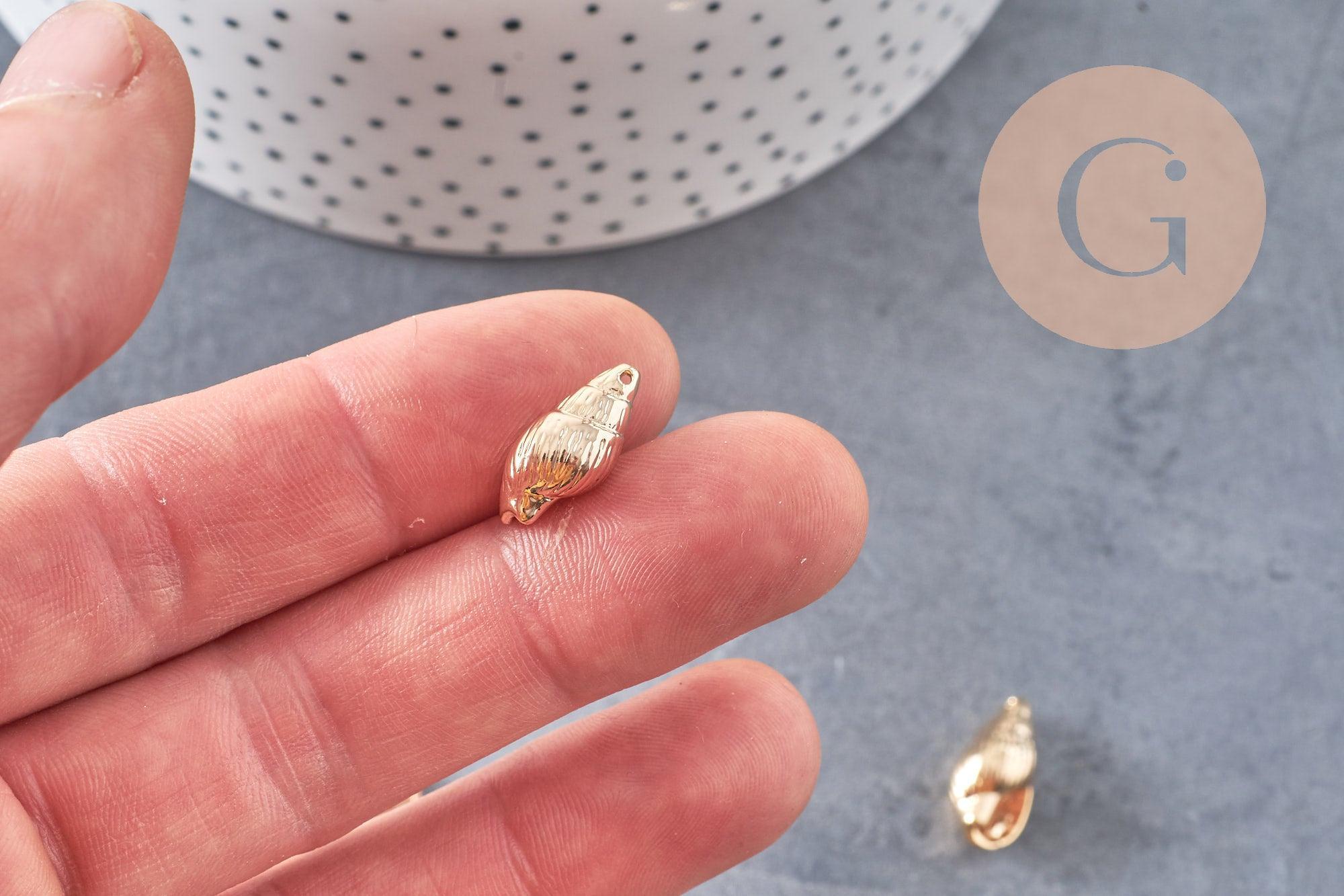 Colgante de concha de oro de 18K, concha de oro, dorado de 18 quilates, colgante de oro, concha de oro, creación de joyas, x 2, 16,5 mm G3584