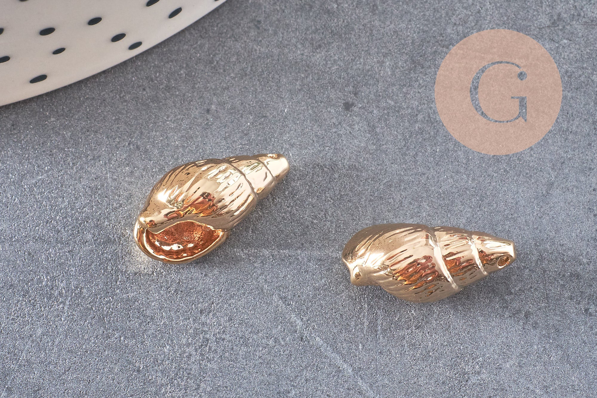 Pendentif coquillage laiton doré 18K 16.5mm, x2 (G3584)