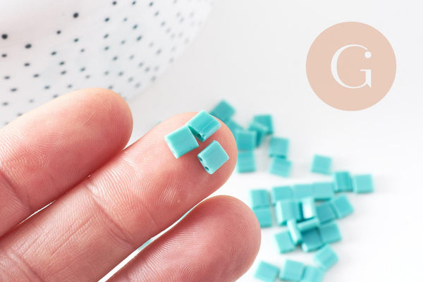 Cuentas de vidrio cuadradas rectangulares verdes, creación de pulseras de cuentas cuadradas, cuentas de tila, 4,5 mm, 2 agujeros, x50 (4,8 gr) (G5480)