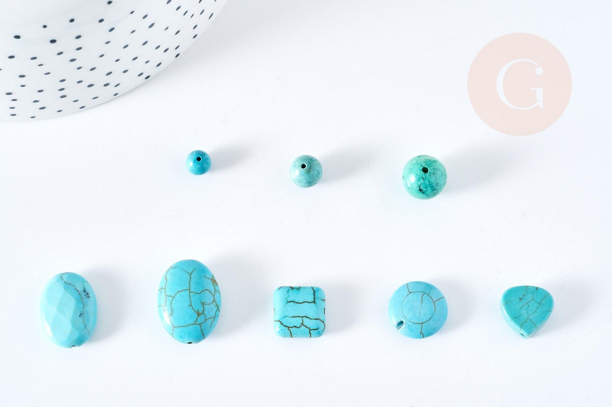 Cuentas de howlita turquesa natural, disco de gota redondo cuadrado, cuentas de piedra, howlita natural, creación de joyas, lote de 5