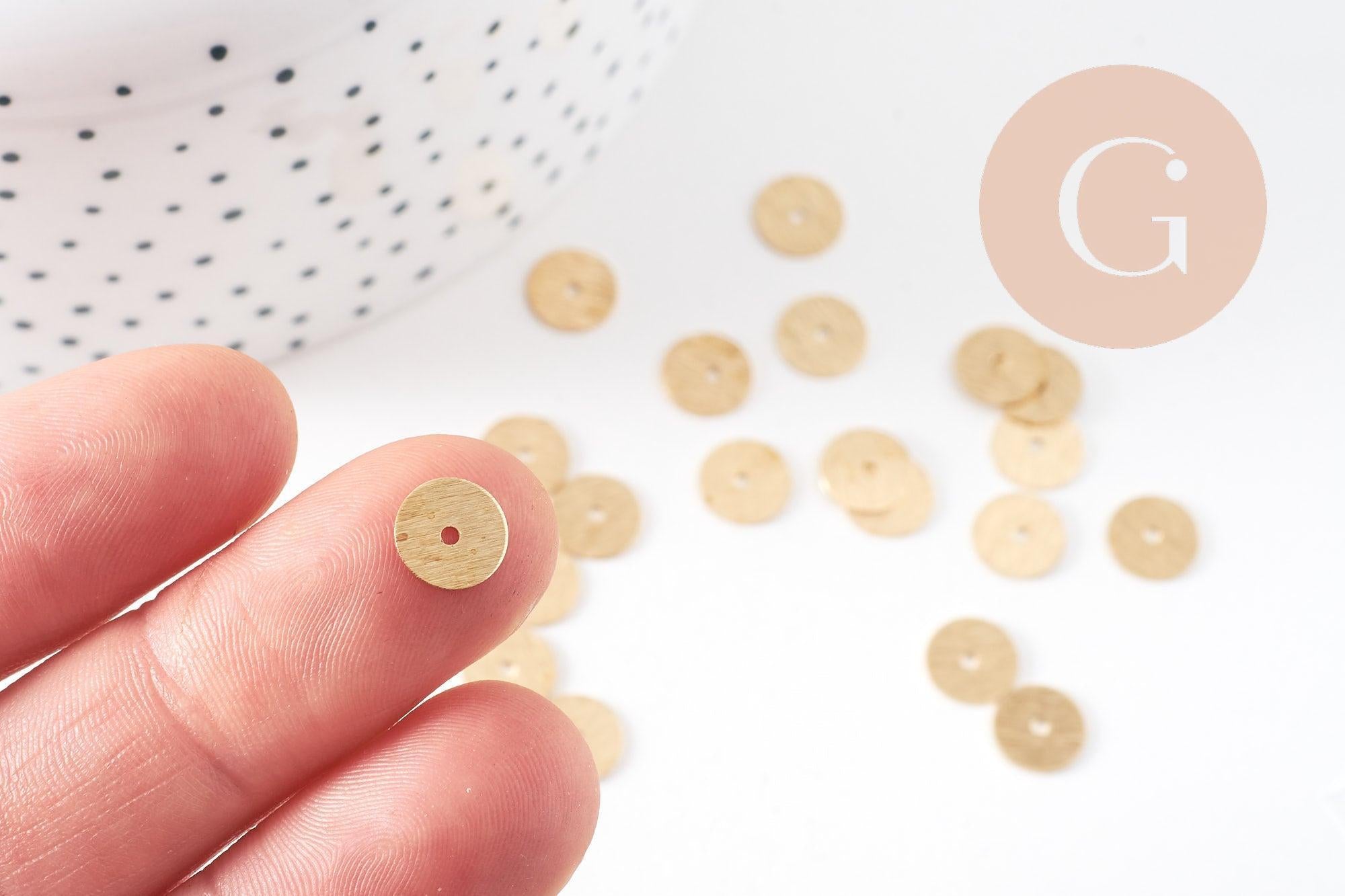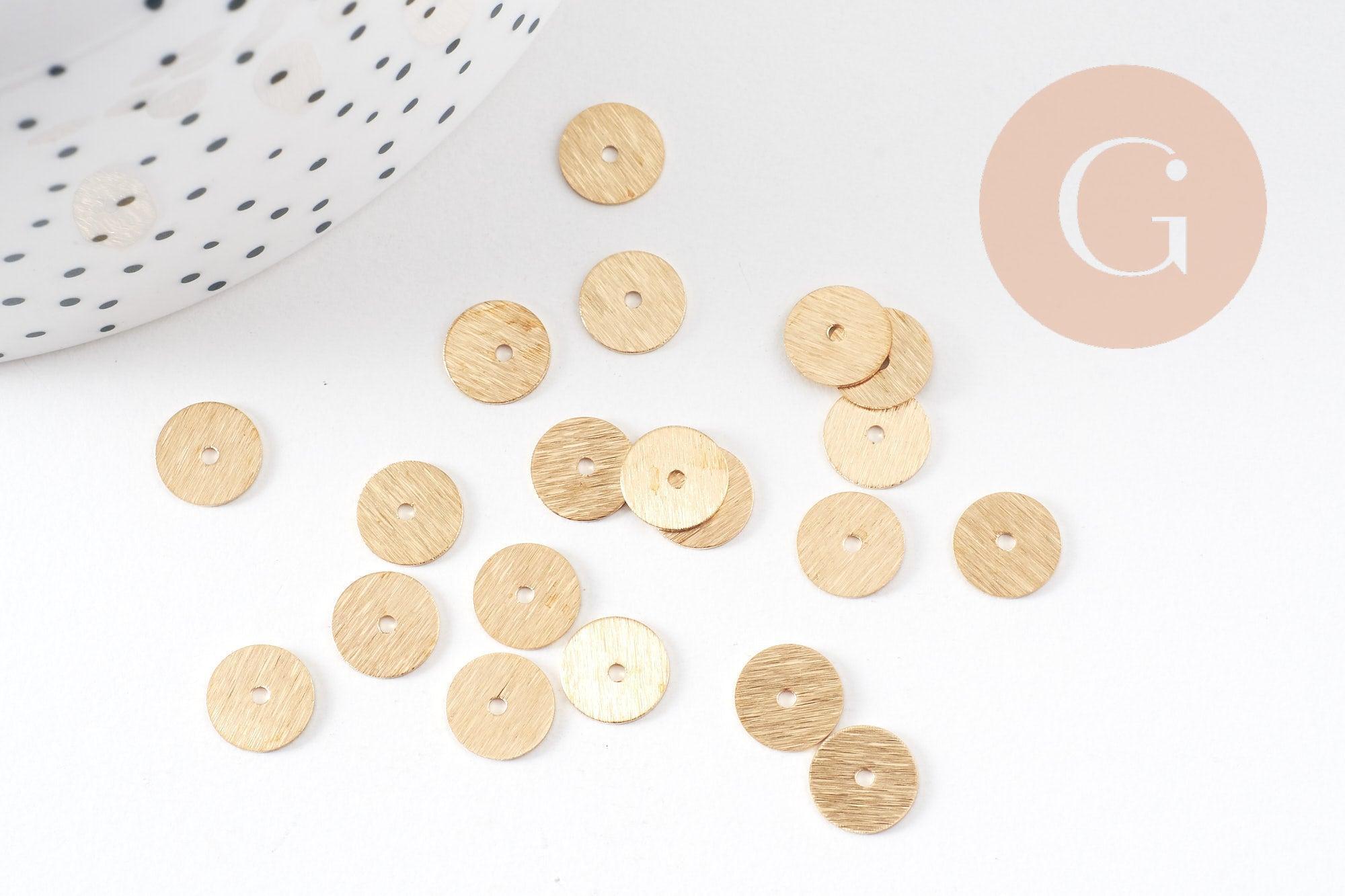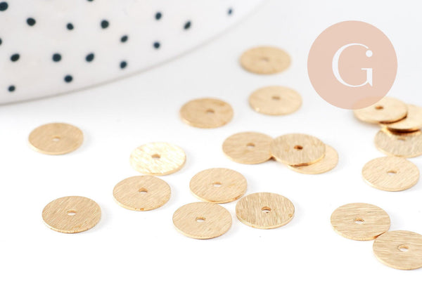 Rondelles laiton doré brossé heishi , perles dorées intercalaire pour création bijoux,perle disque, 8mm, x 20 (G3273)