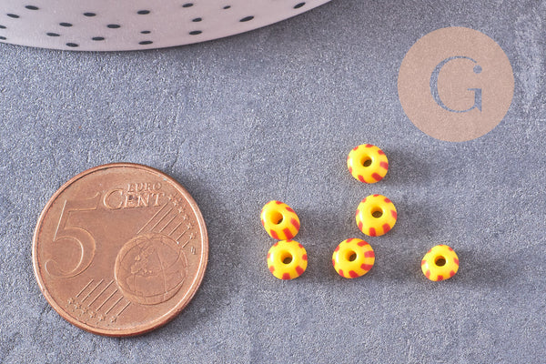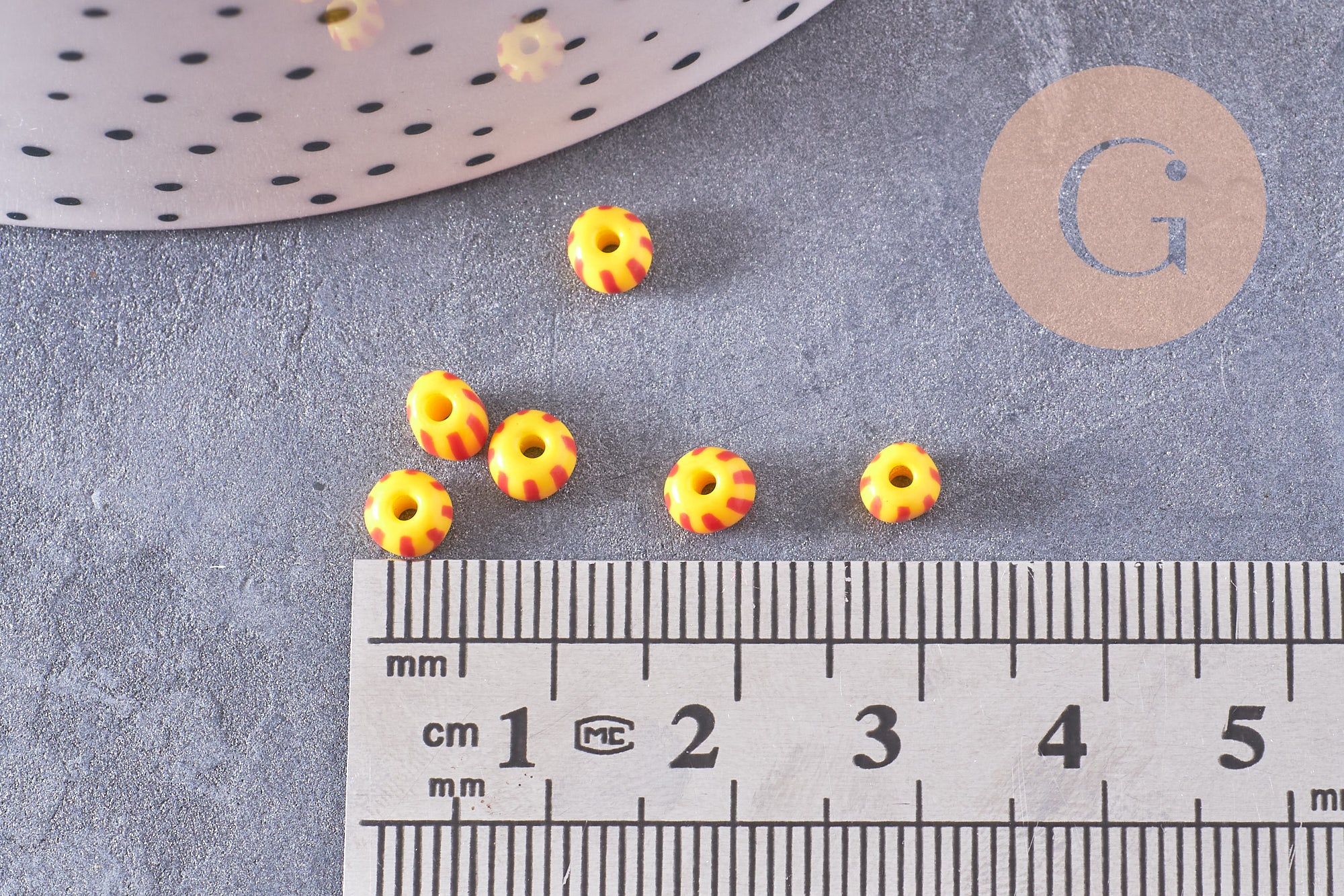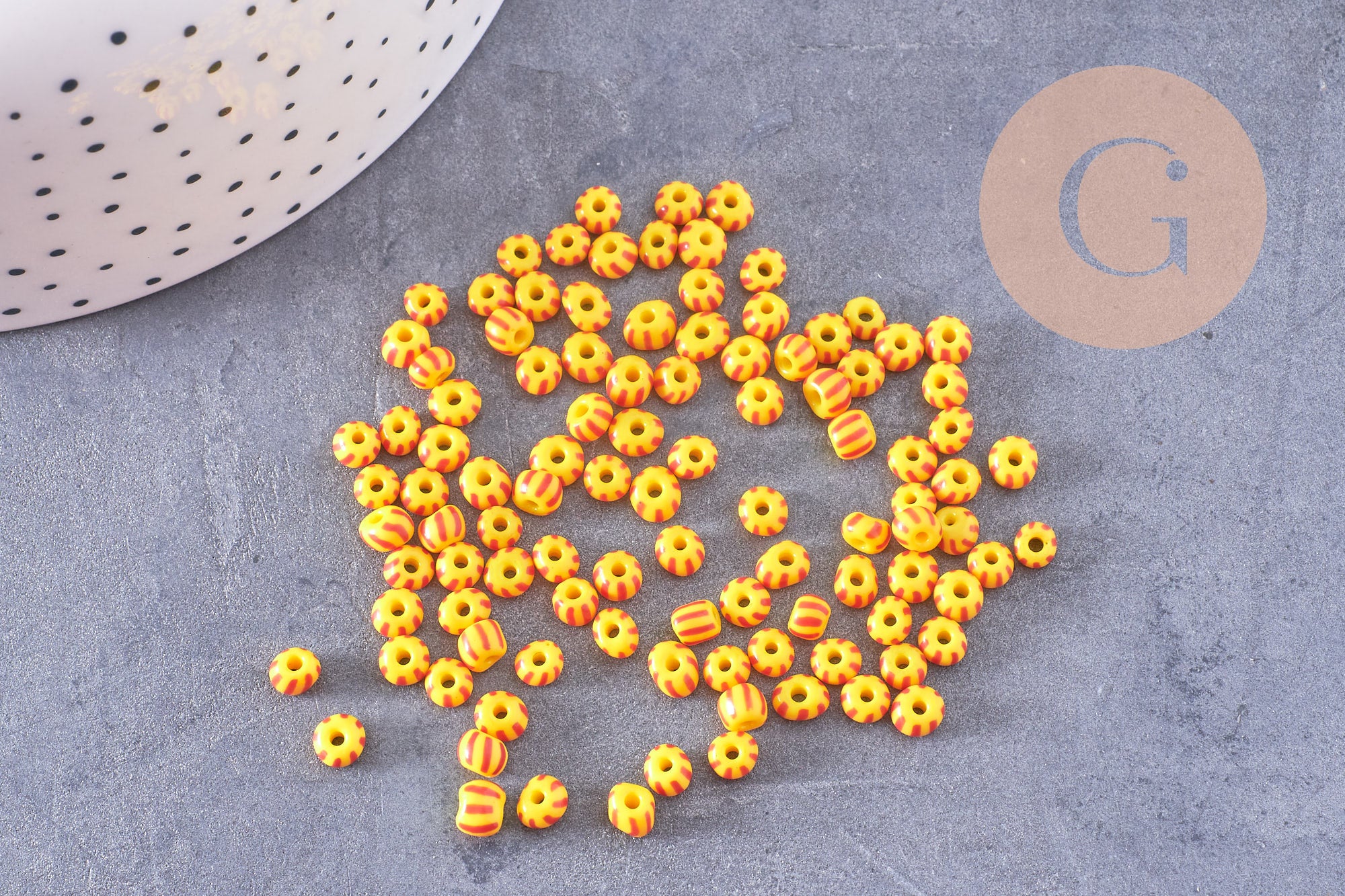 Dale un toque de color y originalidad a tus creaciones DIY con estas pequeñas cuentas de vidrio con un patrón de rayas amarillas y rojas . Su efecto bicolor aporta relieve y luminosidad a todas tus joyas.