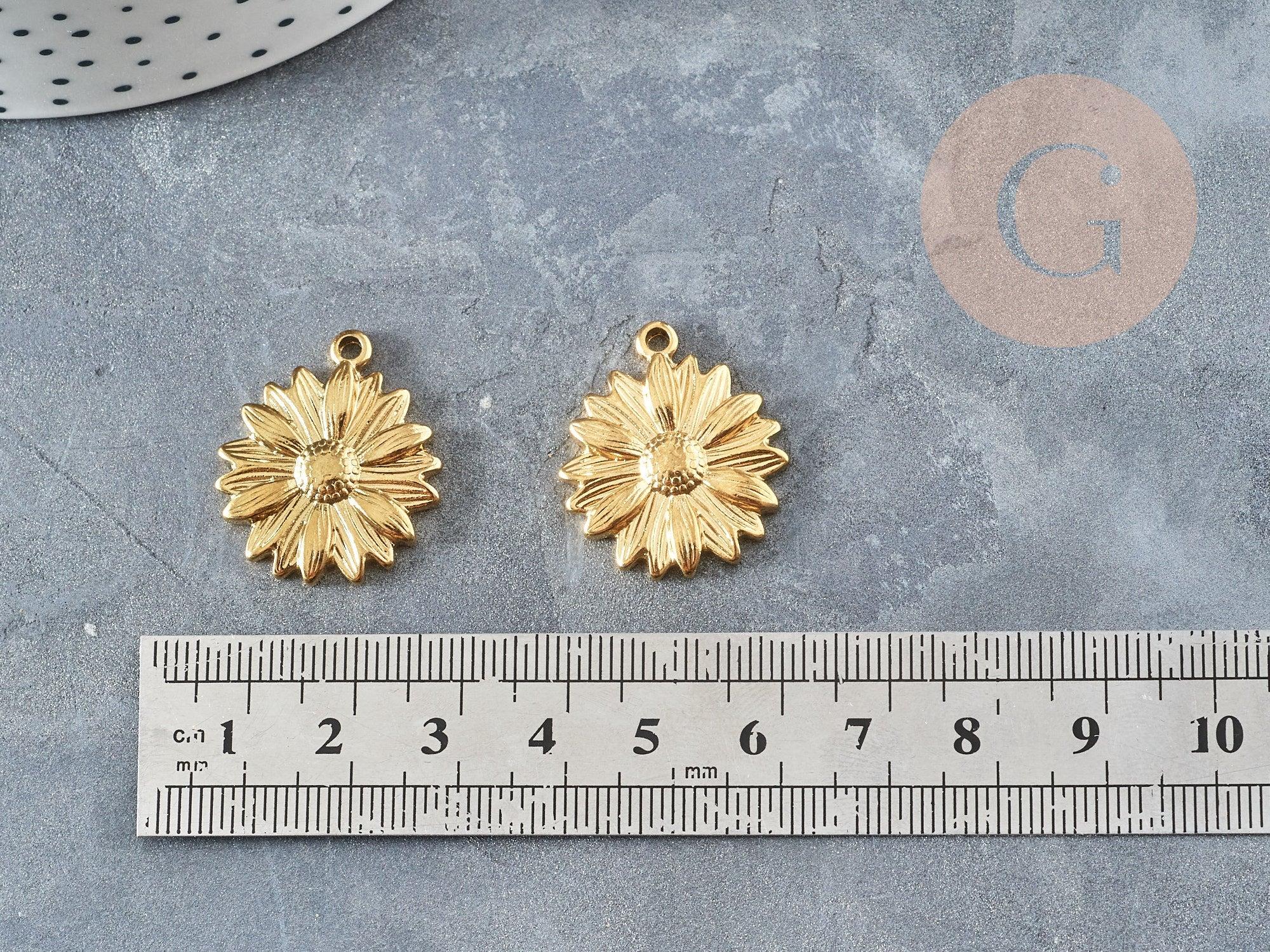 El colgante redondo con medalla de flor de girasol en acero inoxidable dorado 304 está destinado a diseñadores de joyas que buscan un toque distintivo. Su metal de primera calidad y su delicada representación de una flor de girasol brindan larga durabilidad y elegancia. ¡Perfecto para los amantes de la joyería artesanal! 🌻.