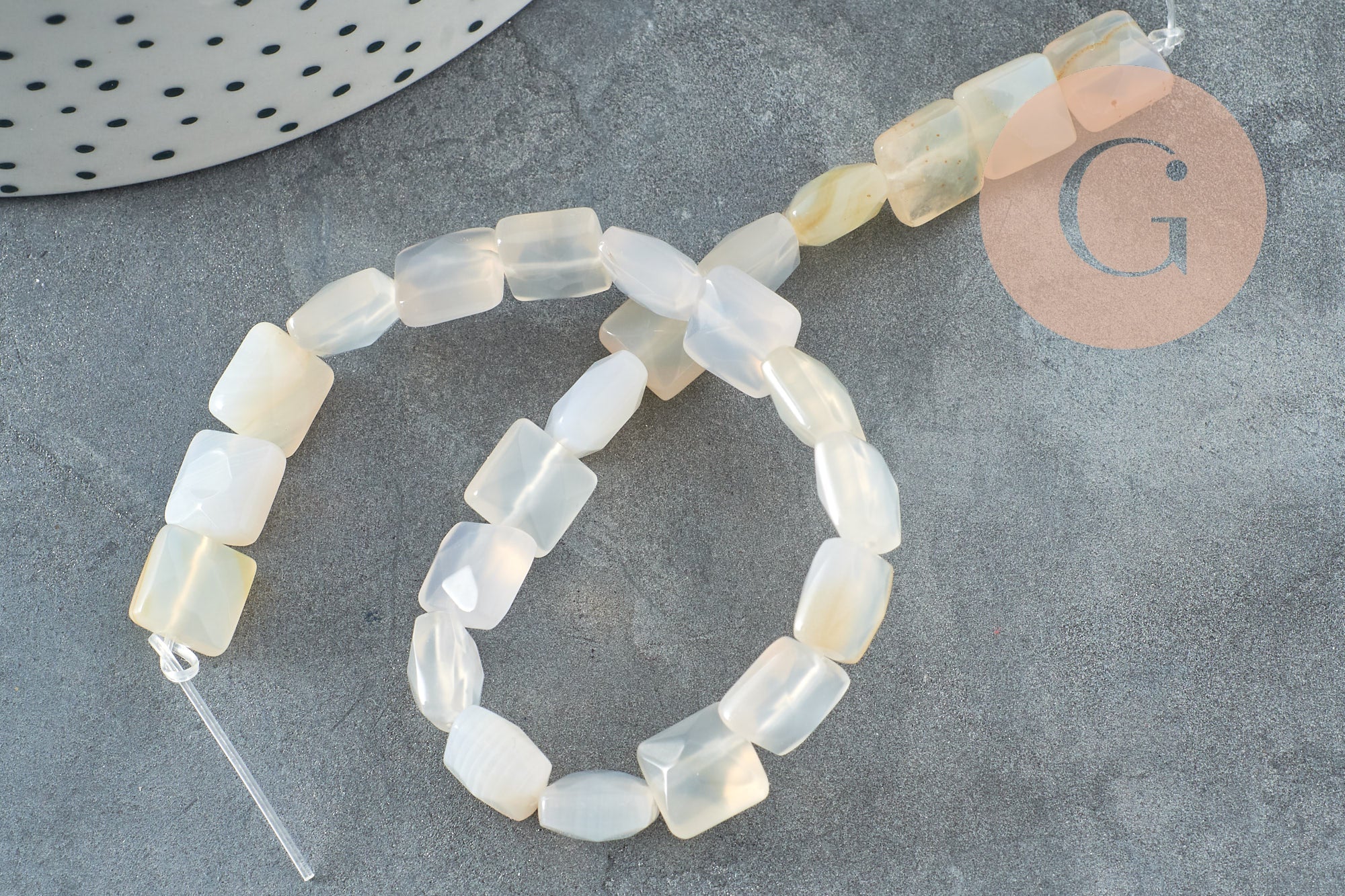 Una tira de aproximadamente 15 cuentas cuadradas de ágata natural blanco-beige para crear tus pendientes, collares y pulseras.