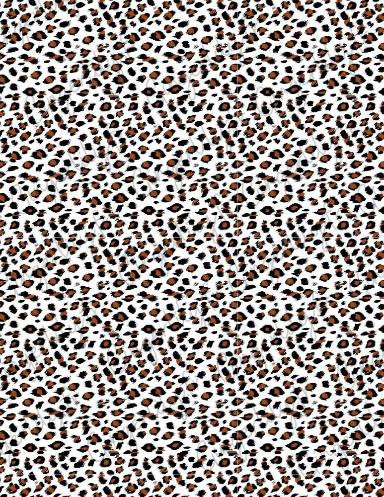 • Patrón: leopardo (manchas negras y marrones sobre fondo blanco)