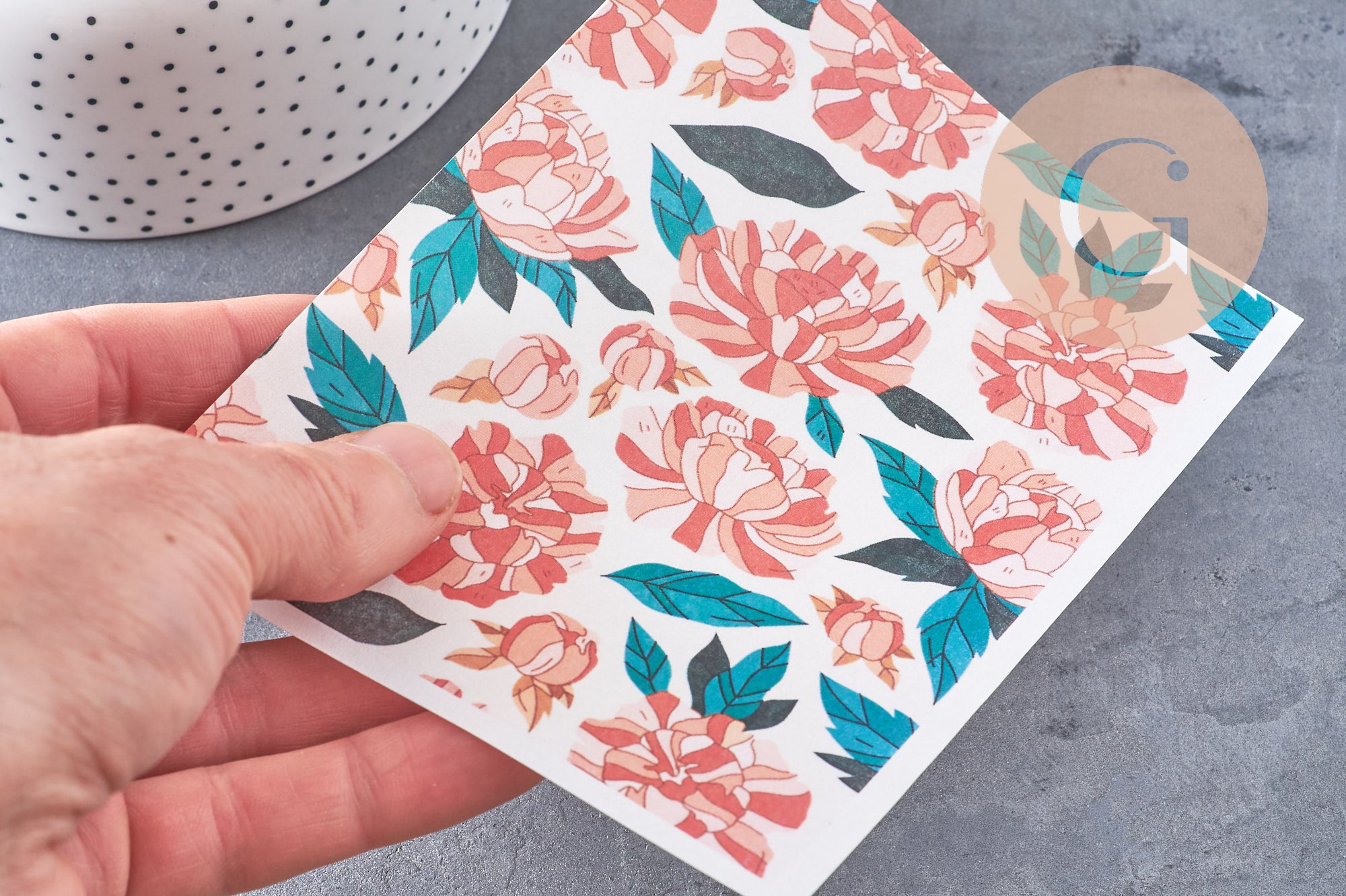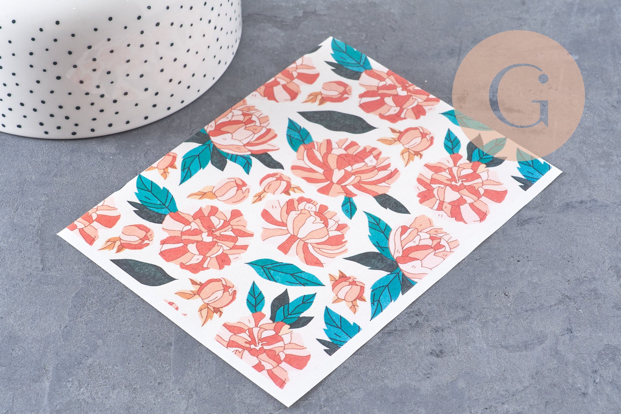 Lámina de transferencia de polímero – Peonías estilizadas 14 x 10 cm, x1 (G10763)