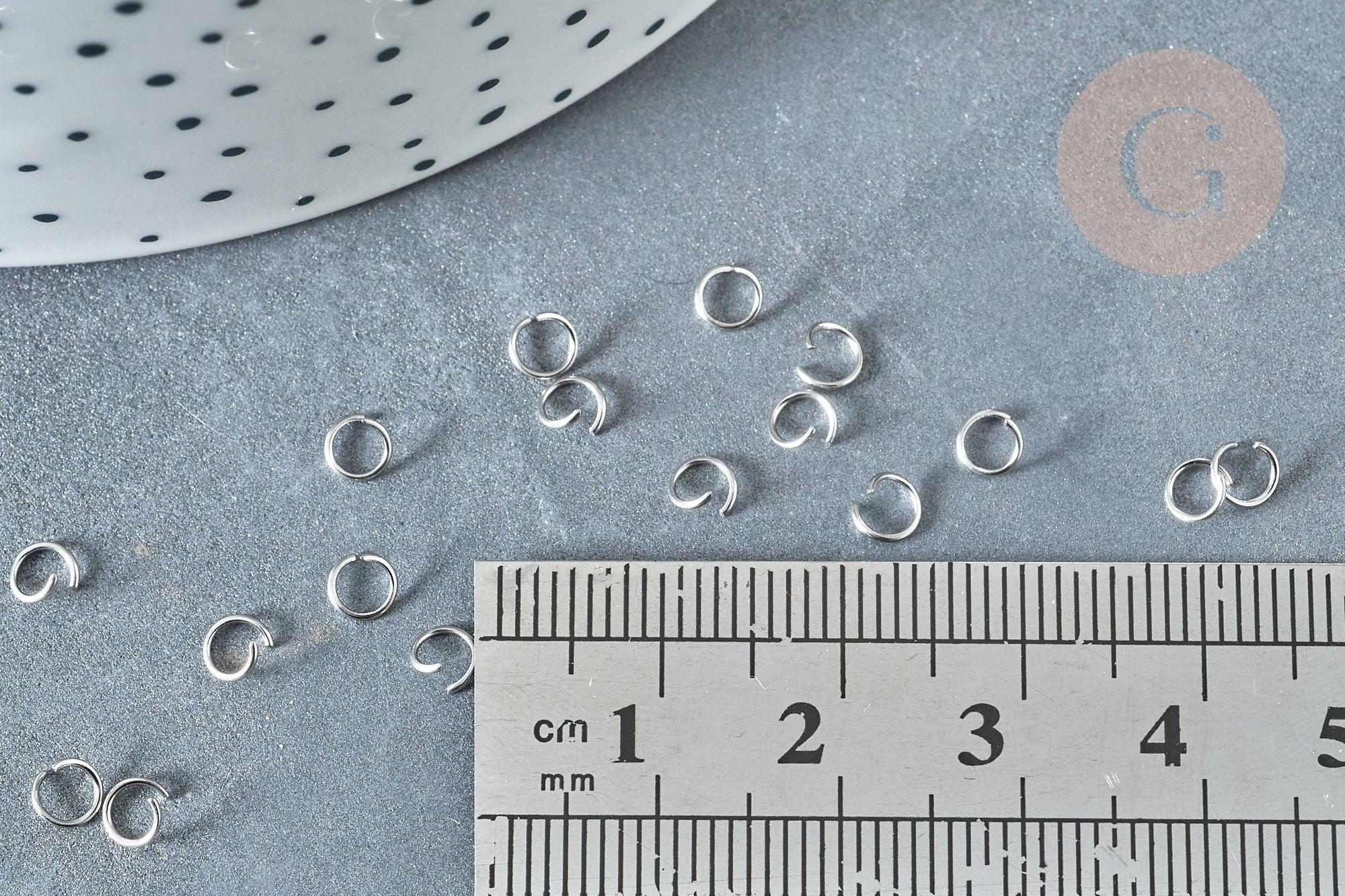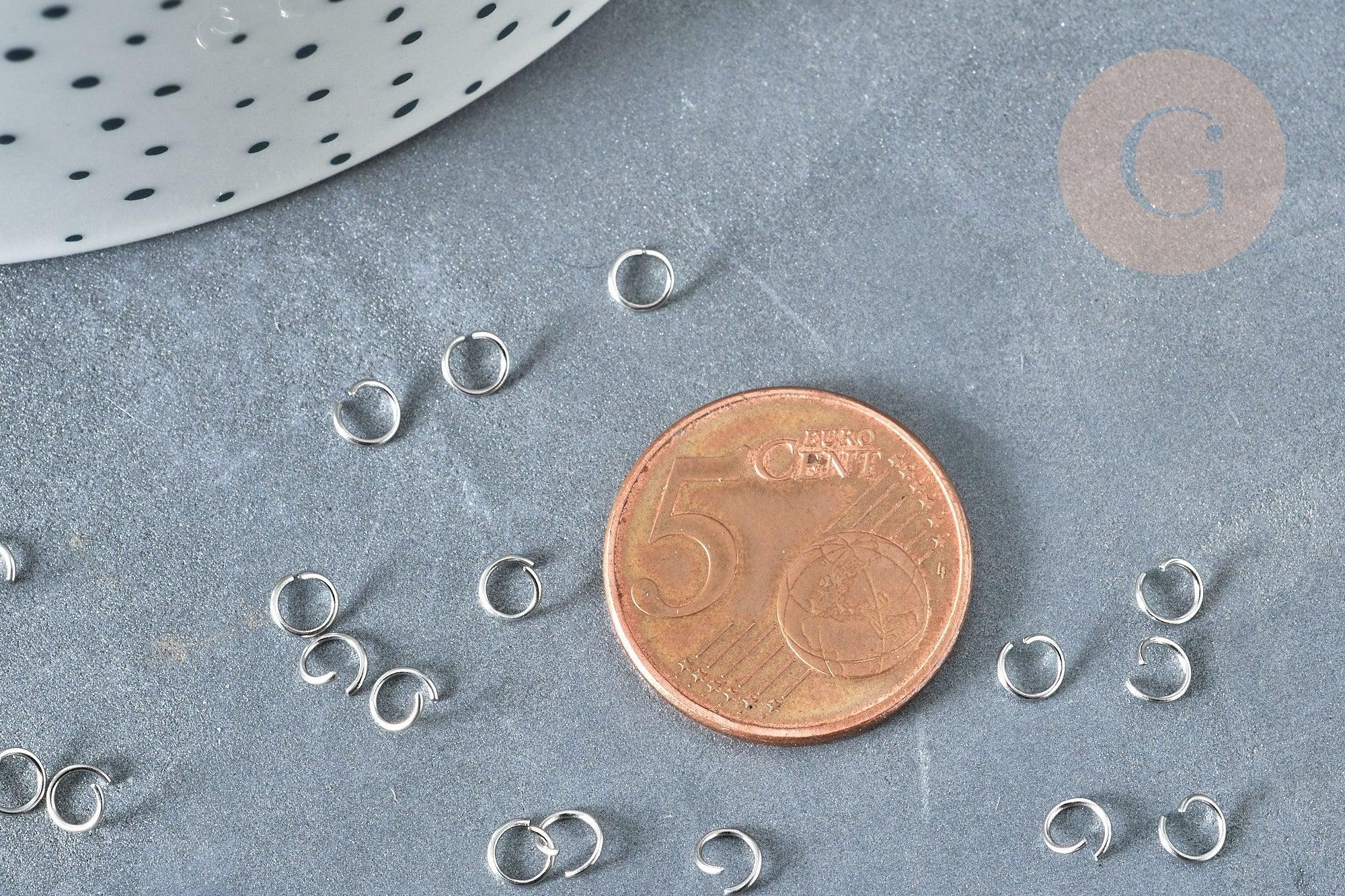 Anneaux de jonction ronds acier 304 platine inoxydable 4mm, x1gr (G9145)
