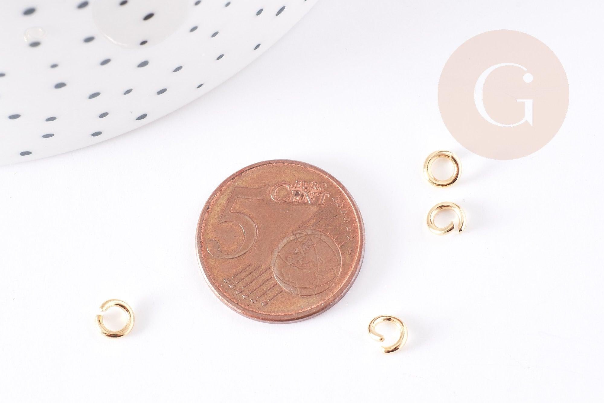 Estas anillas abiertas de acero inoxidable 304 chapadas en oro de 5 mm son esenciales para todas tus creaciones de joyería DIY. Resistentes, duraderas y elegantes, te permiten conectar fácilmente dos piezas: colgantes, cadenas, dijes o cierres.