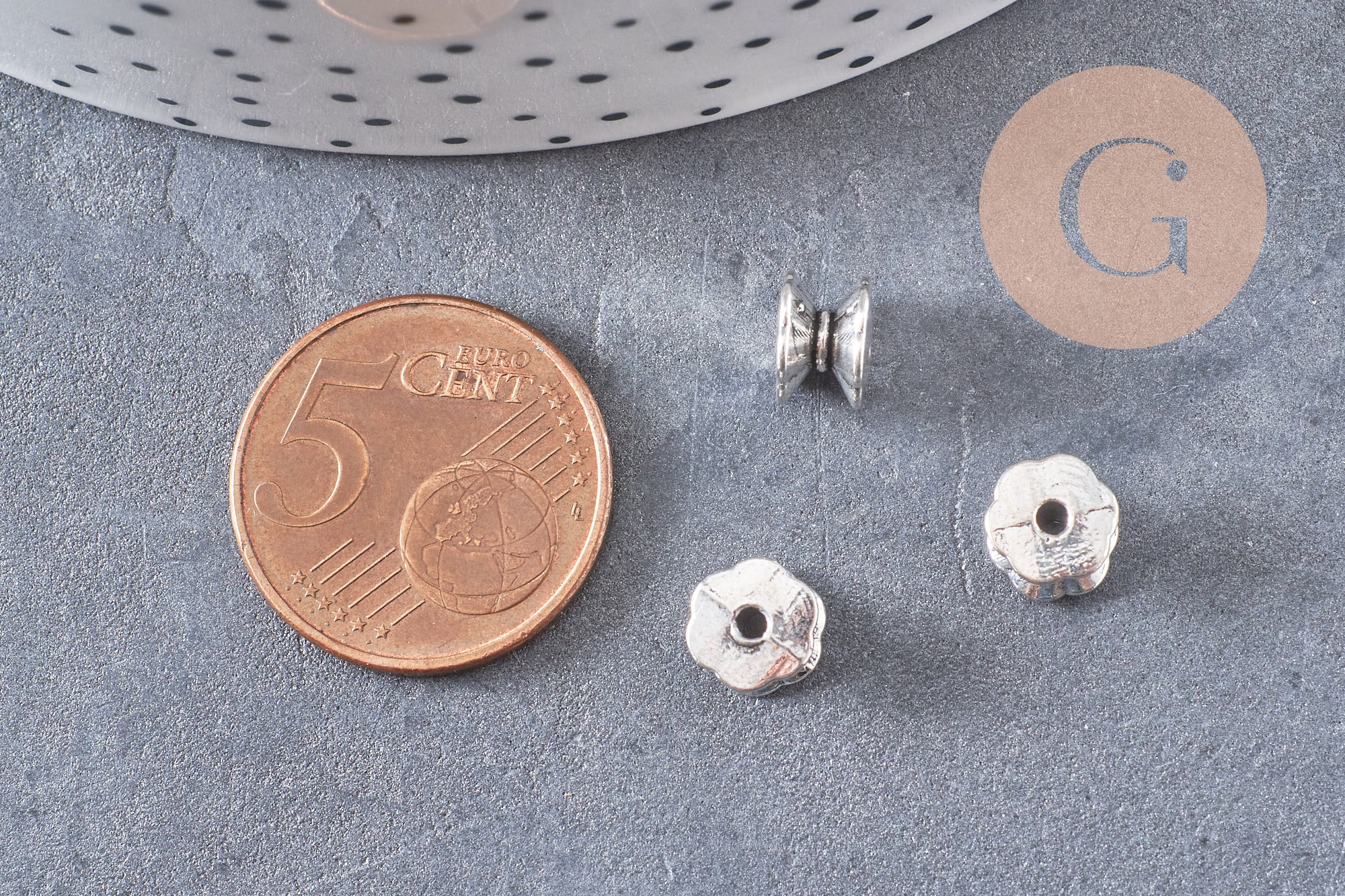 Perles intercalaires tube argent vieilli 7mm x10, (G1438)