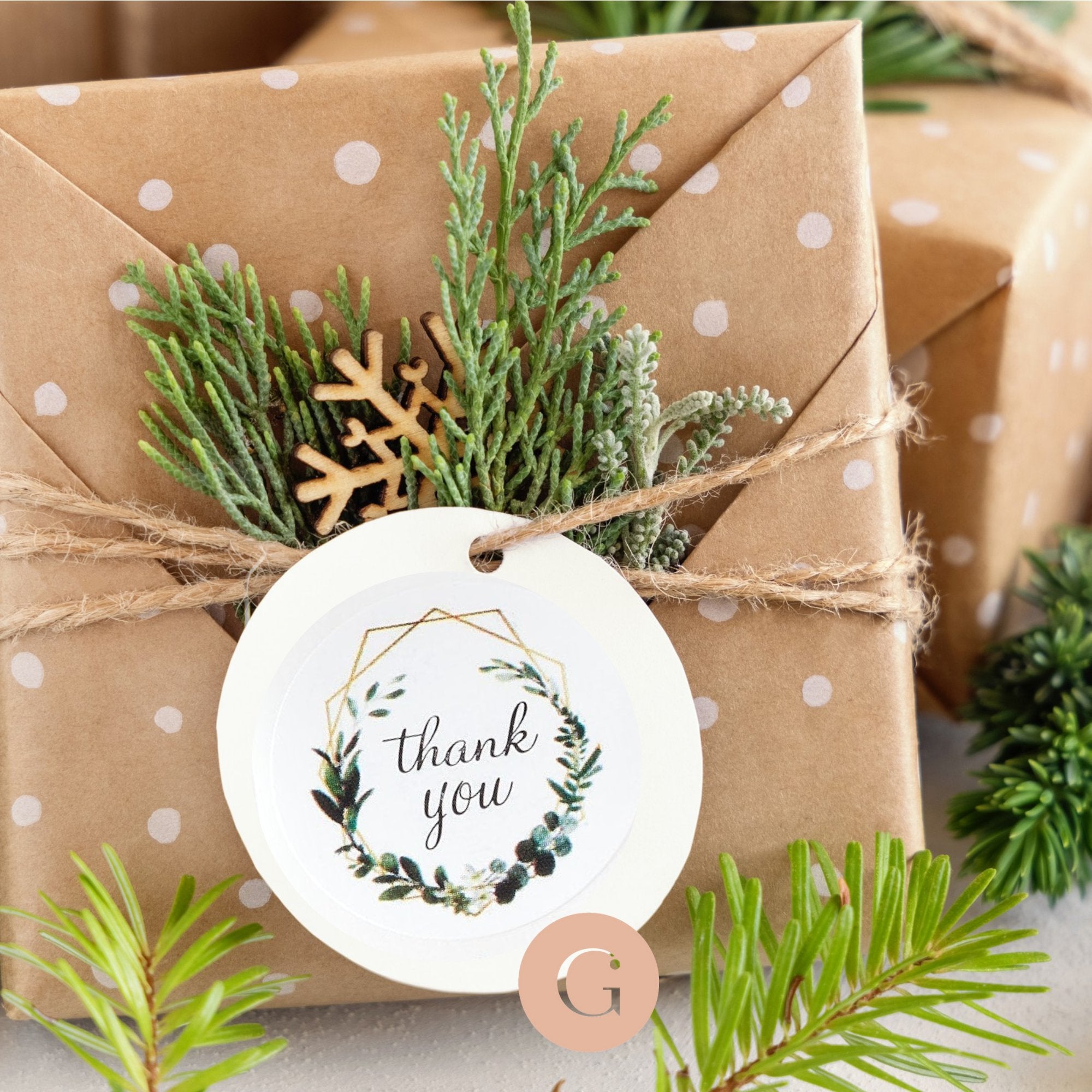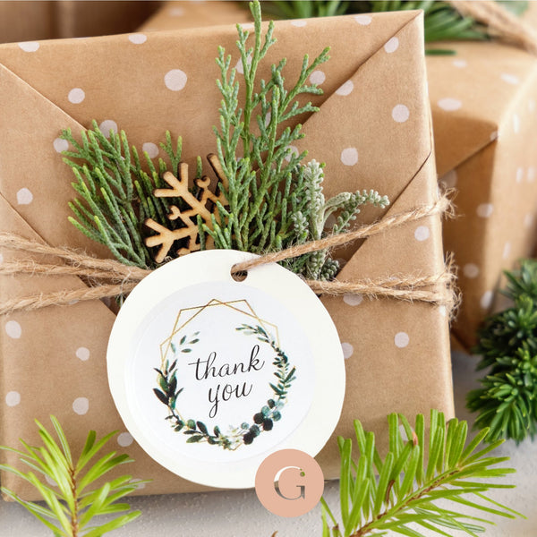 Enamórate de estas pegatinas con un adorable motivo vegetal “GRACIAS” como agradecimiento o para decoración de fiestas o pequeños regalos de boda.