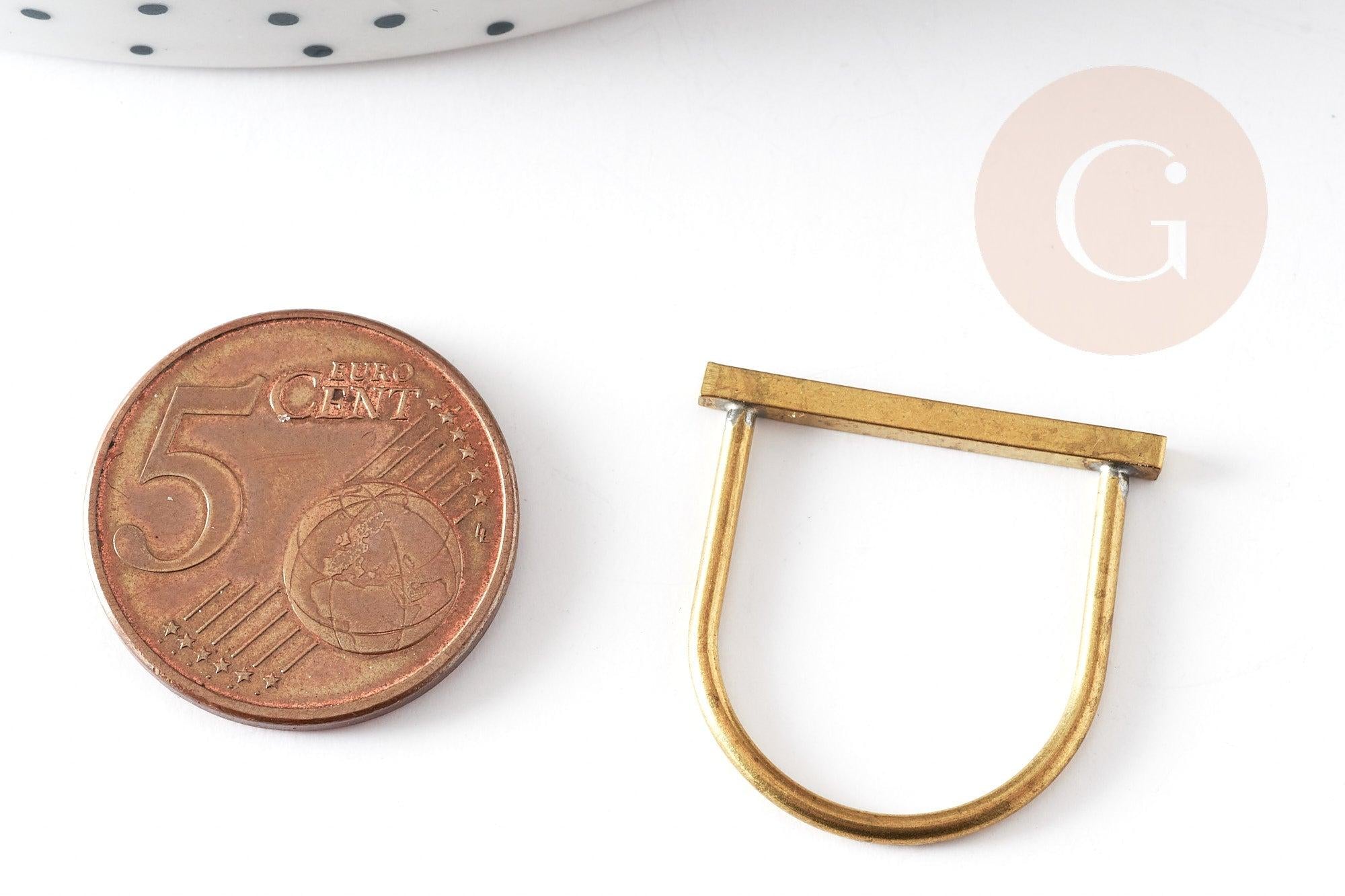 Un porta anillos muy bonito de latón en bruto que consta de una barra cuadrada y un anillo muy sencillo.