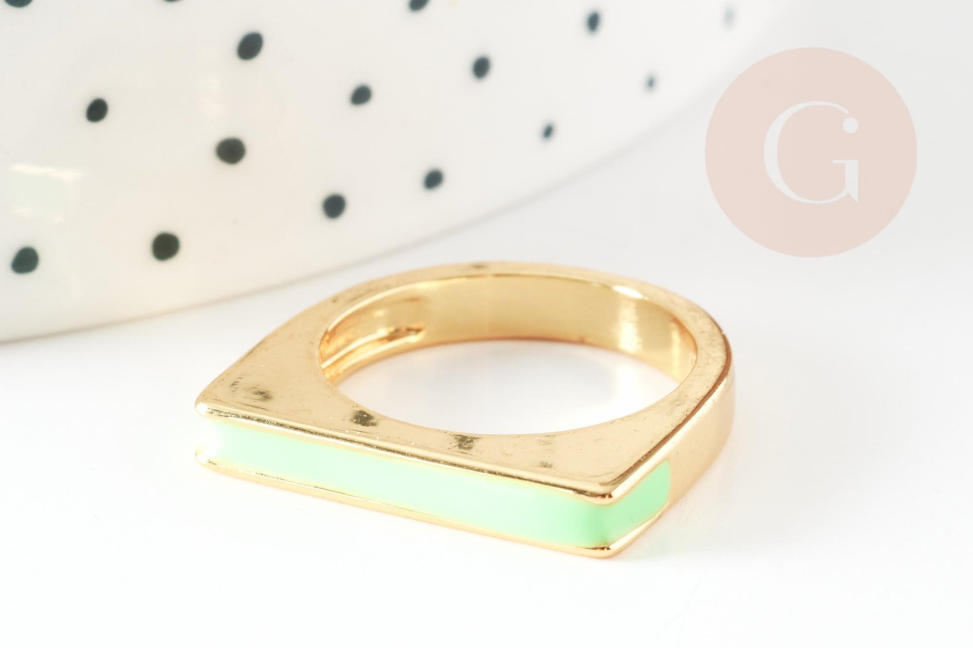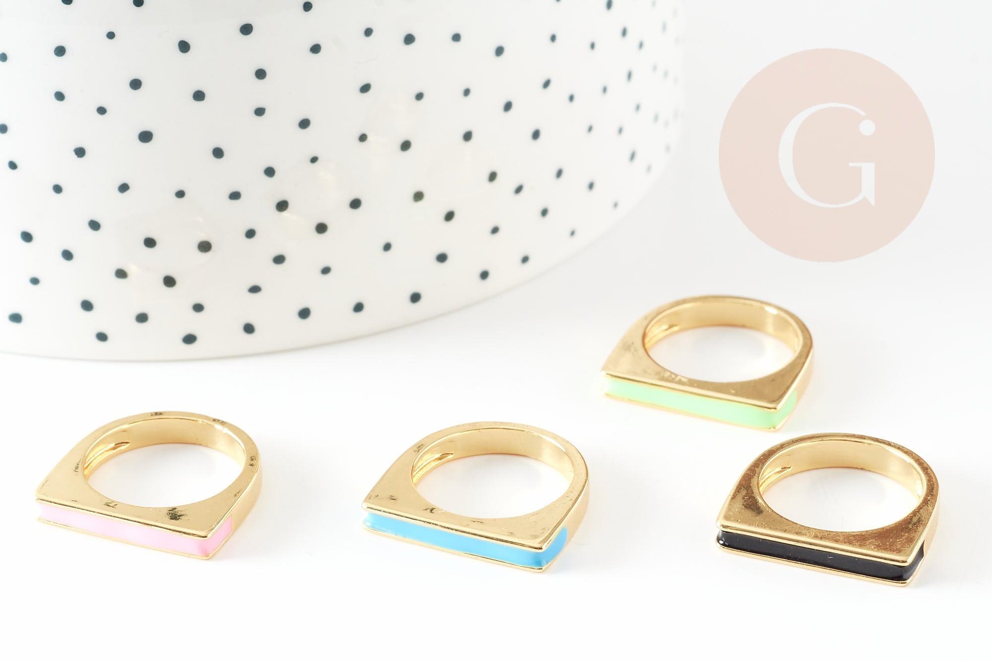 Anillo de latón bañado en oro con esmalte en forma de cuadrado, creación de joyas, anillo de mujer, regalo de cumpleaños, 17 mm, unidad