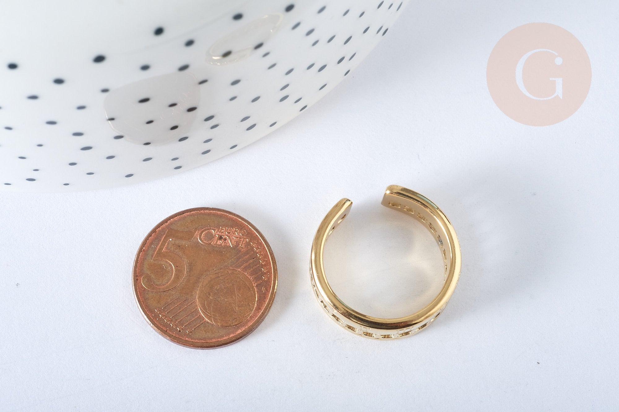 Bague réglable chiffre romain acier doré taille 54, x1 (G7034)