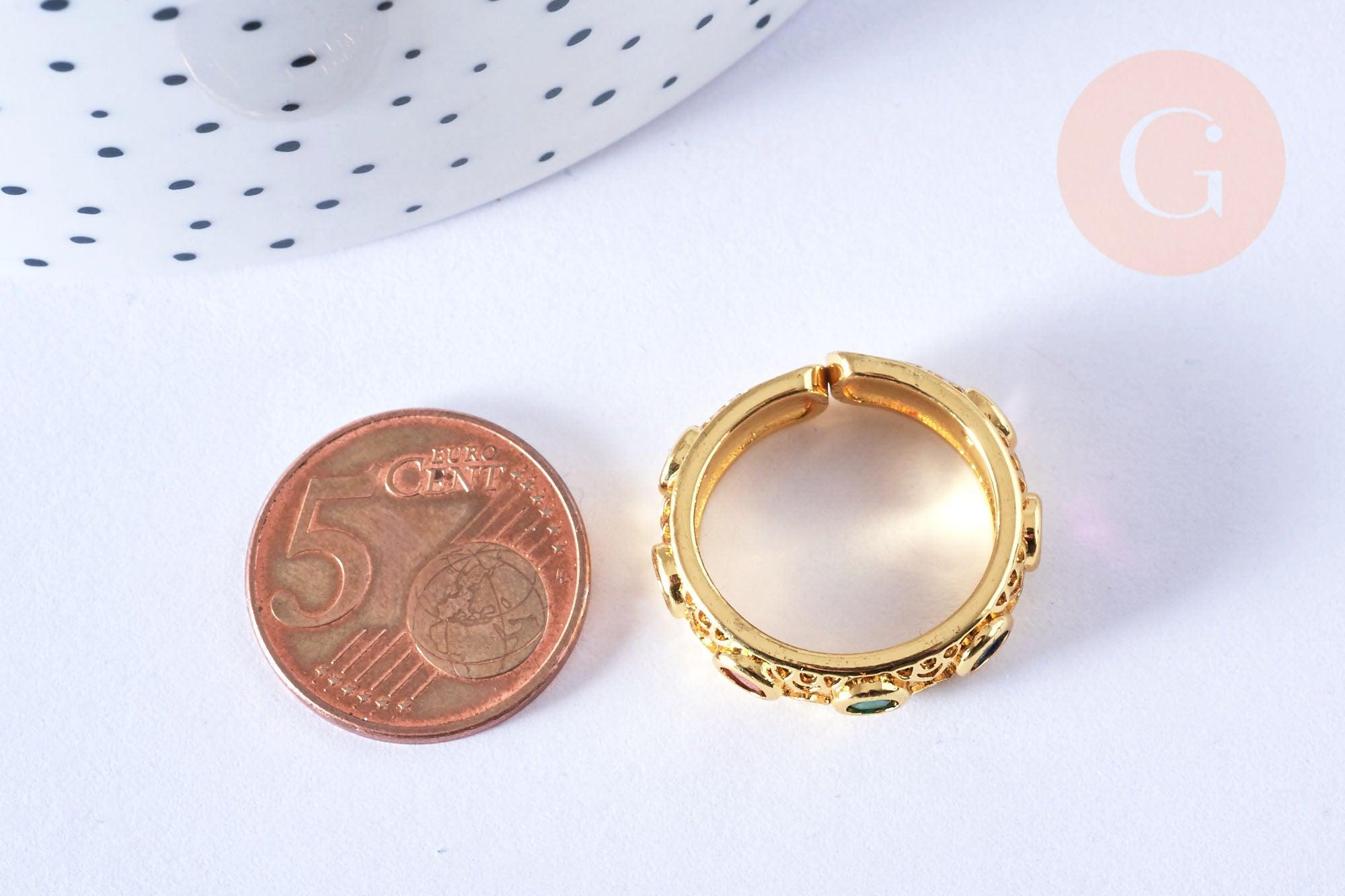 Bague réglable dorée 18k zircons colorés 18.5mm, x1 (G6885)
