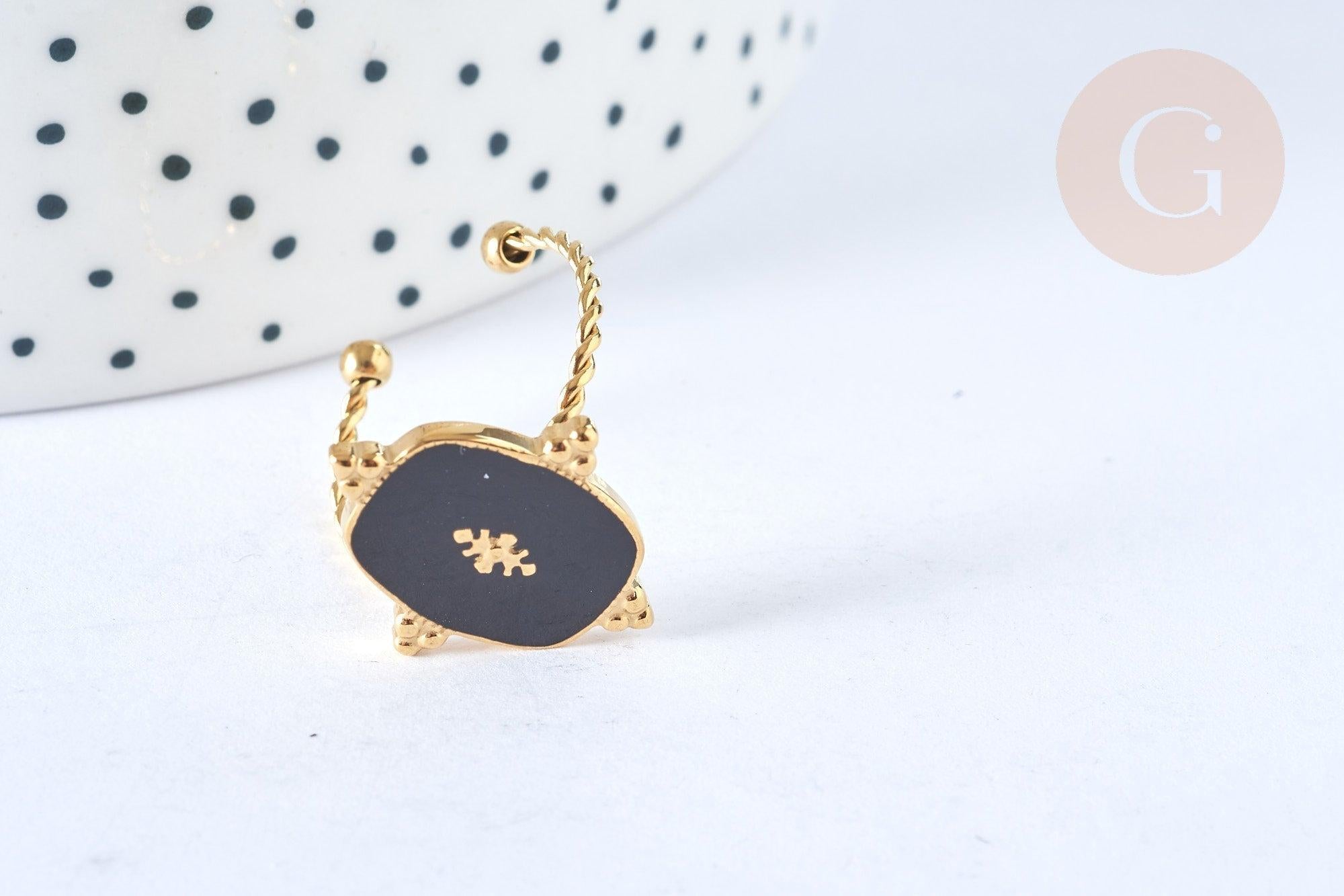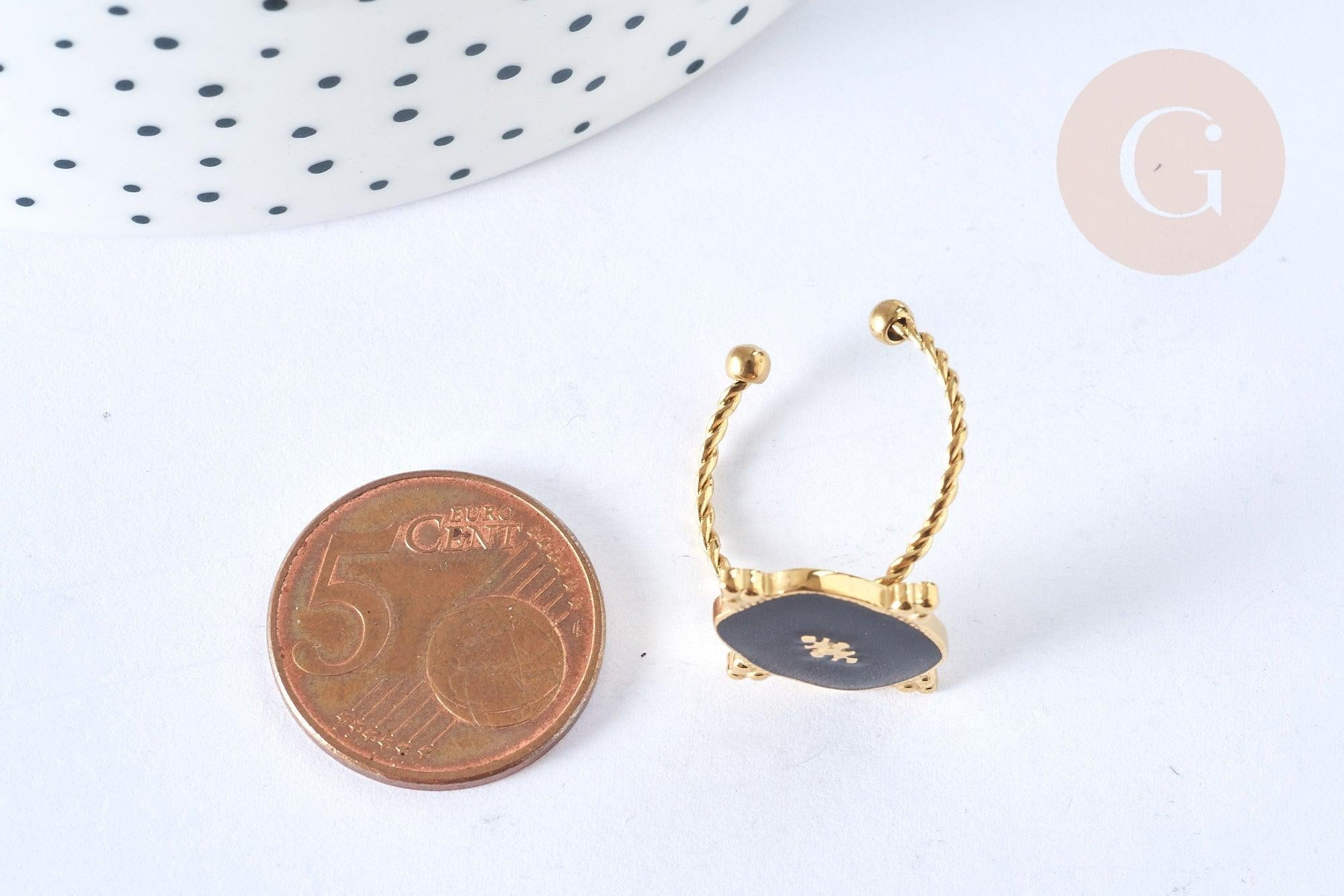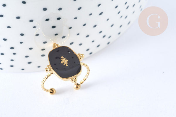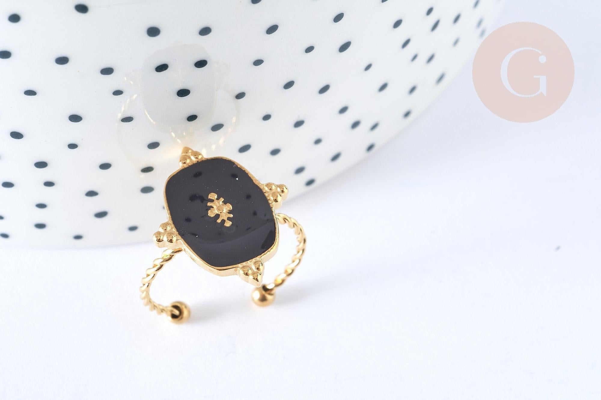 Bague réglable émail noir acier 304 inoxydable doré Taille 54, x1 (G7000)