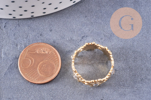 Anillo ajustable con flores de margaritas y circonitas, acero inoxidable 304 bañado en oro IP talla 54, x1 (G10692)