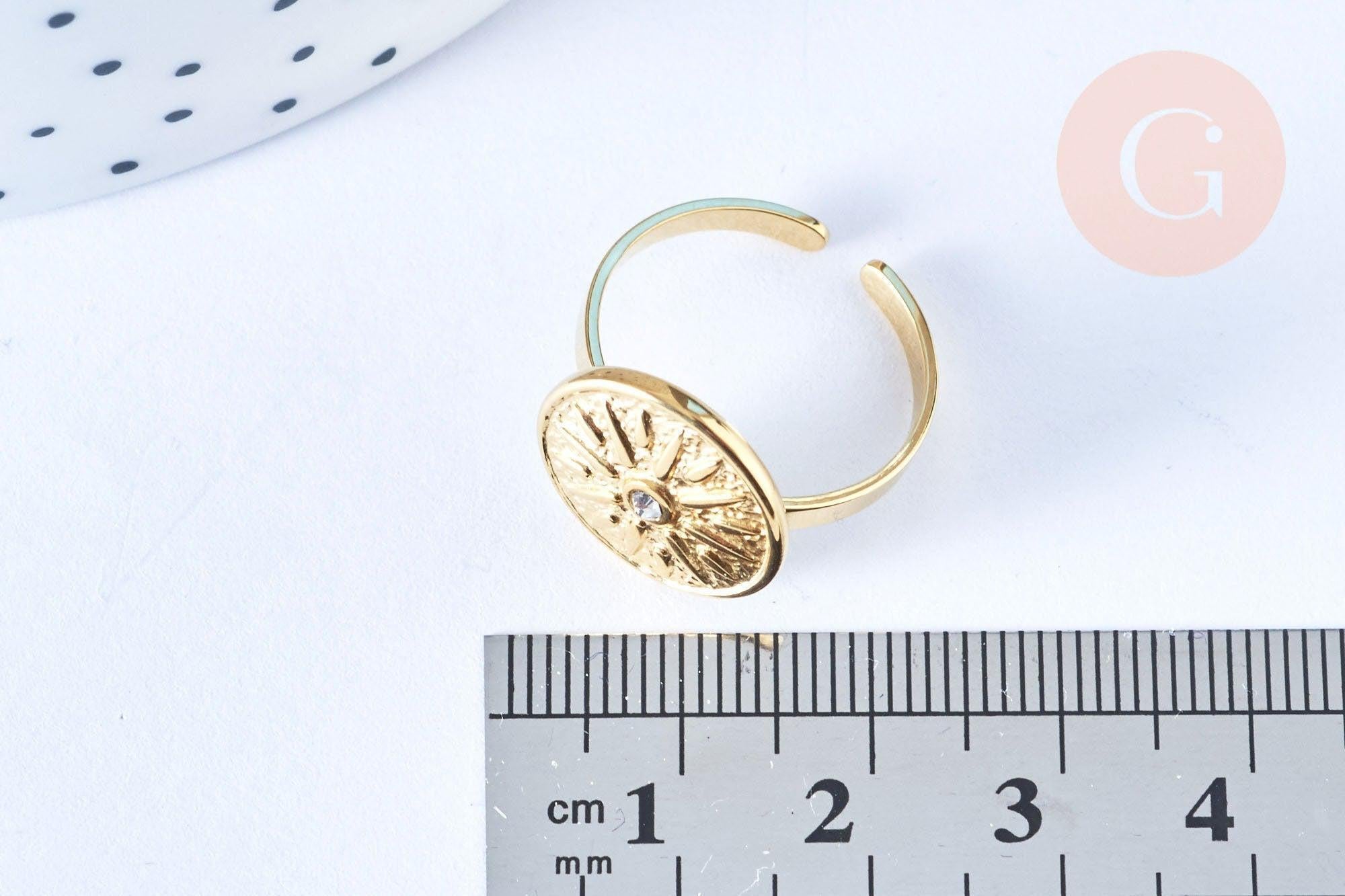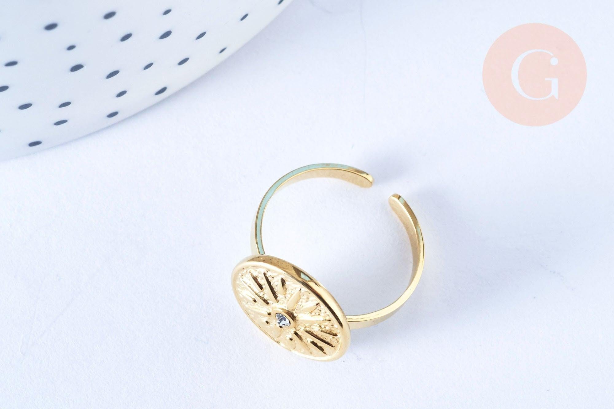 Anillo ajustable medalla sol cristal oro acero Talla 54, x1 (G6408)