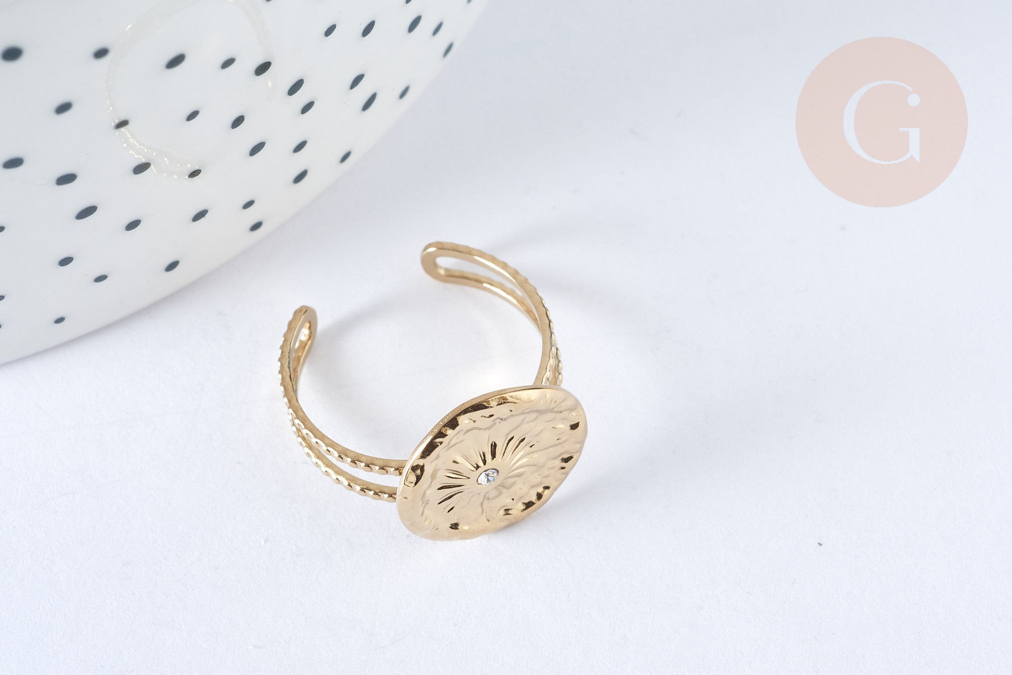 Anillo ajustable con circonita sol, acero inoxidable 304, baño de oro, 304 Talla 54, x1 (G7016)