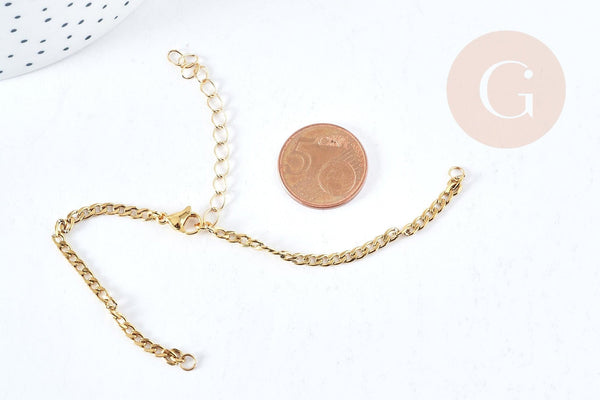 Base de bracelet réglable maille gourmette acier doré 304 inoxydable 15.5cm, x1 (G8624)