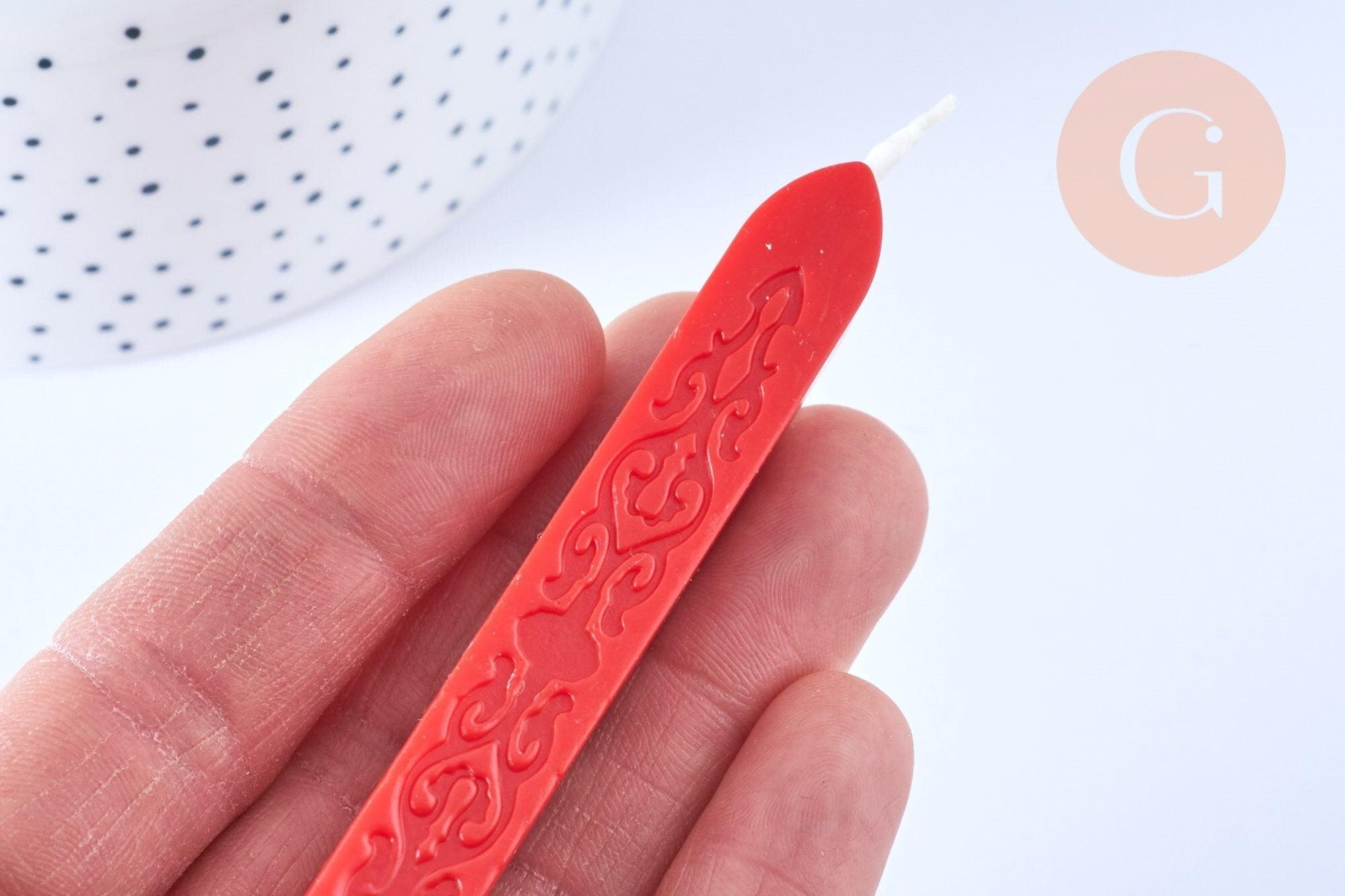 Barra de lacre de color rojo brillante con mecha, un suministro para crear sellos personalizados para tus invitaciones de boda DIY