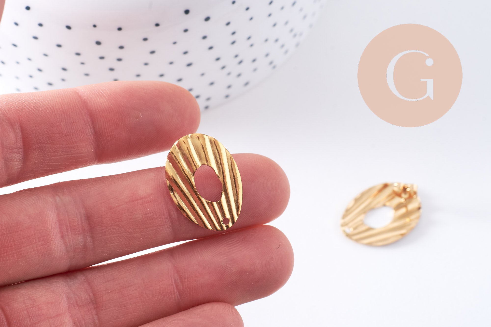 Dale un toque chic y gráfico a tus creaciones con estos pendientes ovalados estriados de acero inoxidable 304 bañados en oro . Su elegante forma ovalada y textura acanalada les confieren un aspecto moderno y refinado, perfecto para creaciones minimalistas o sofisticadas.