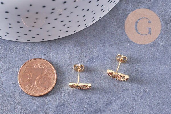 Pendientes arcoíris de latón dorado con circonitas multicolor, 12 mm (par) (G3776)