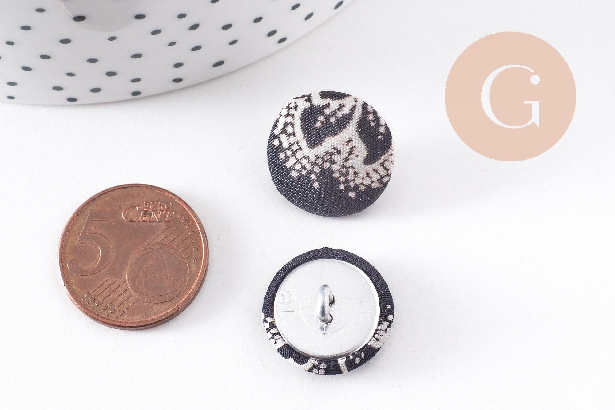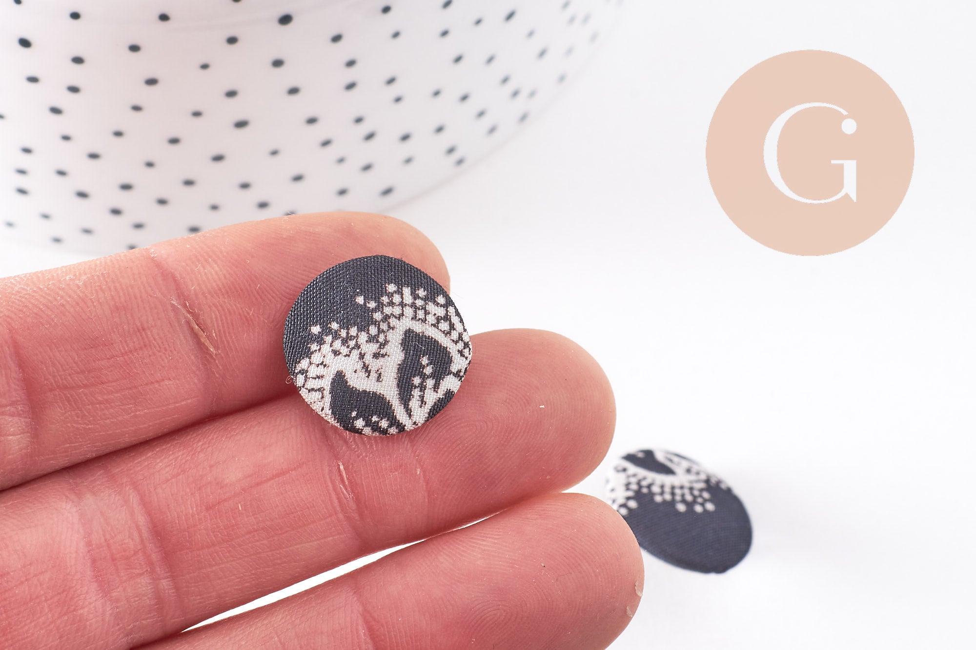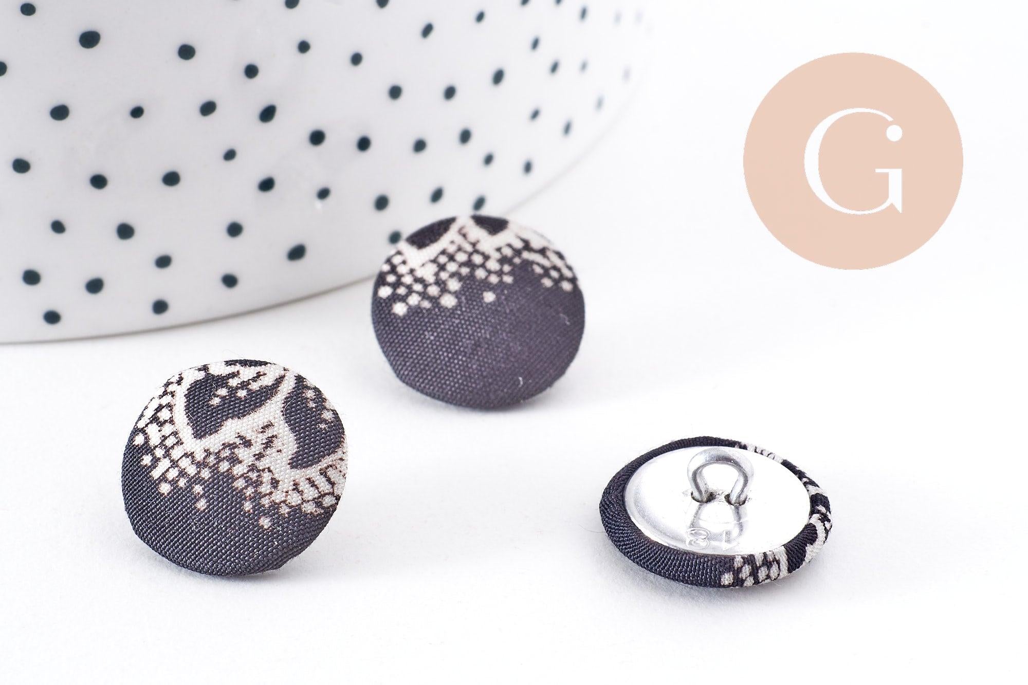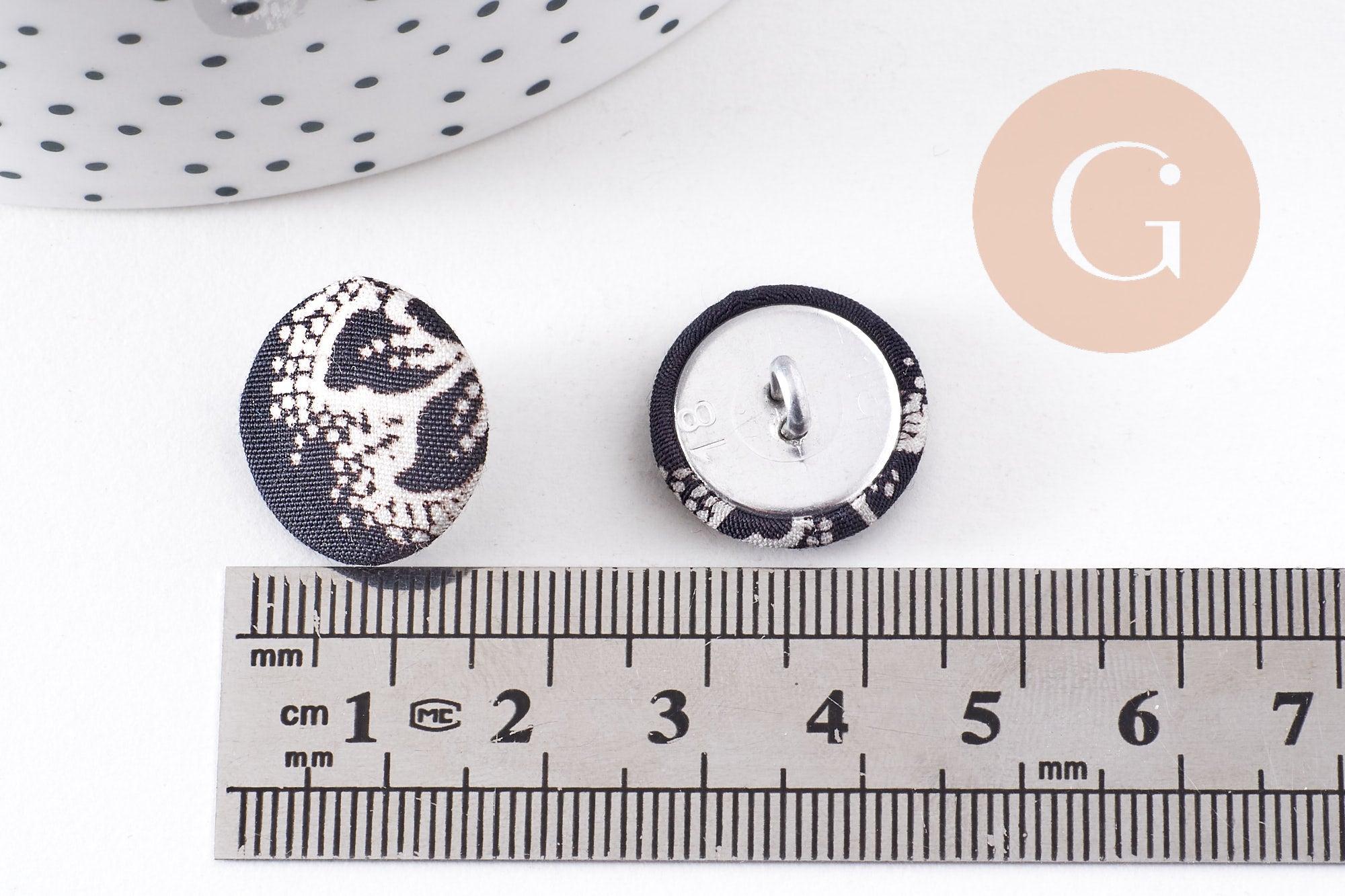 Bouton ancien recouvert polyester noir et blanc 16mm, x1 (G10149)