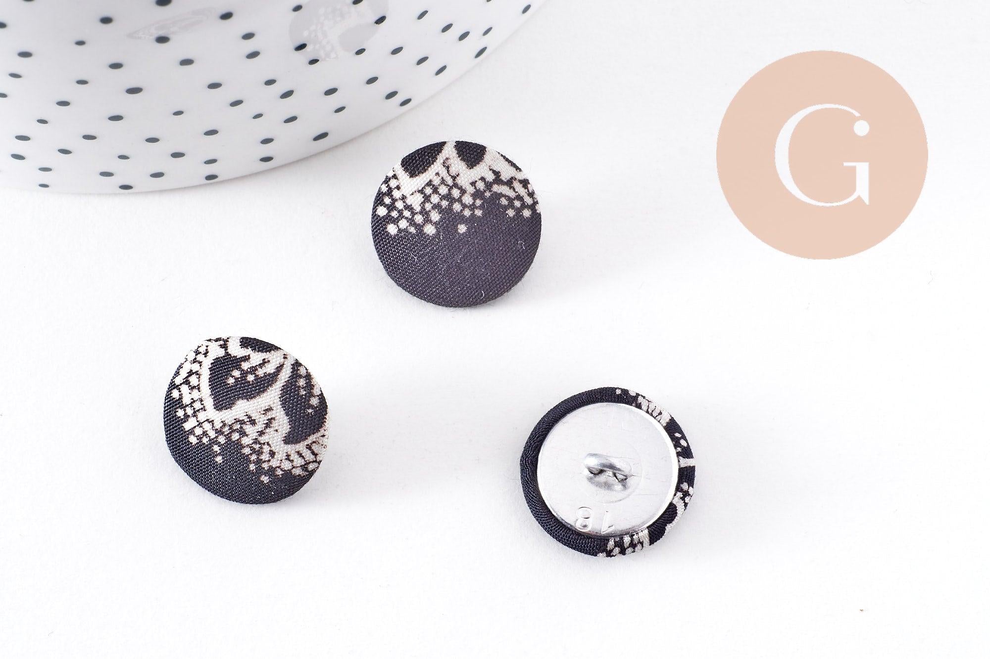 Botón antiguo recubierto de poliéster blanco y negro de 16 mm, x1 (G10149)