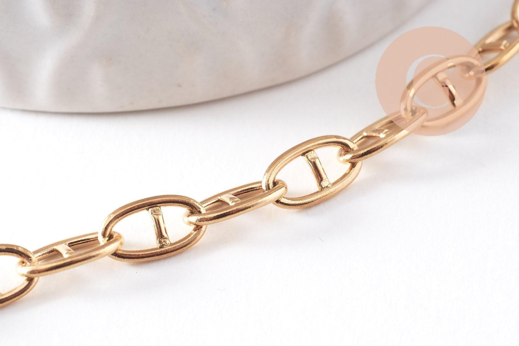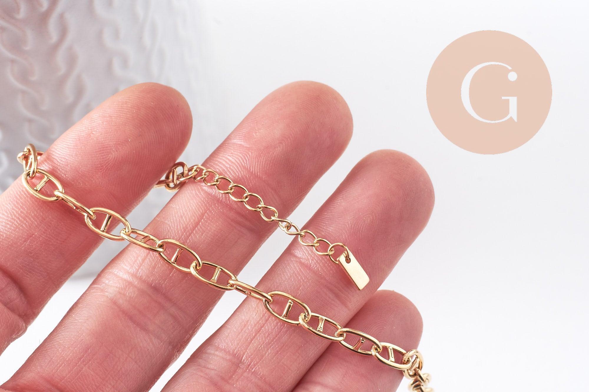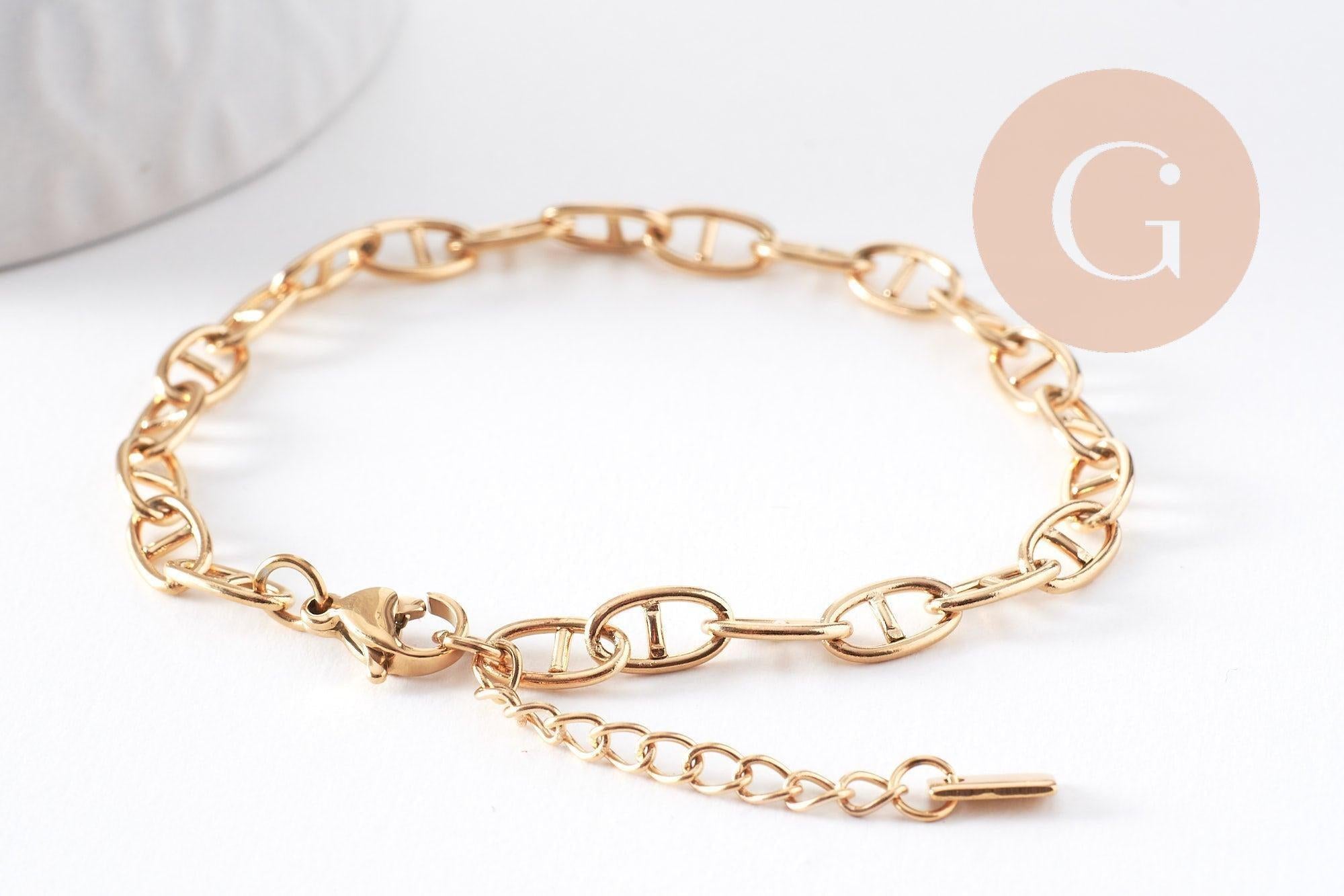 Añade un toque de sofisticación a tu estilo con esta pulsera de cadena de malla marina de acero inoxidable 304 , recubierta con un acabado en oro IP de 14K .