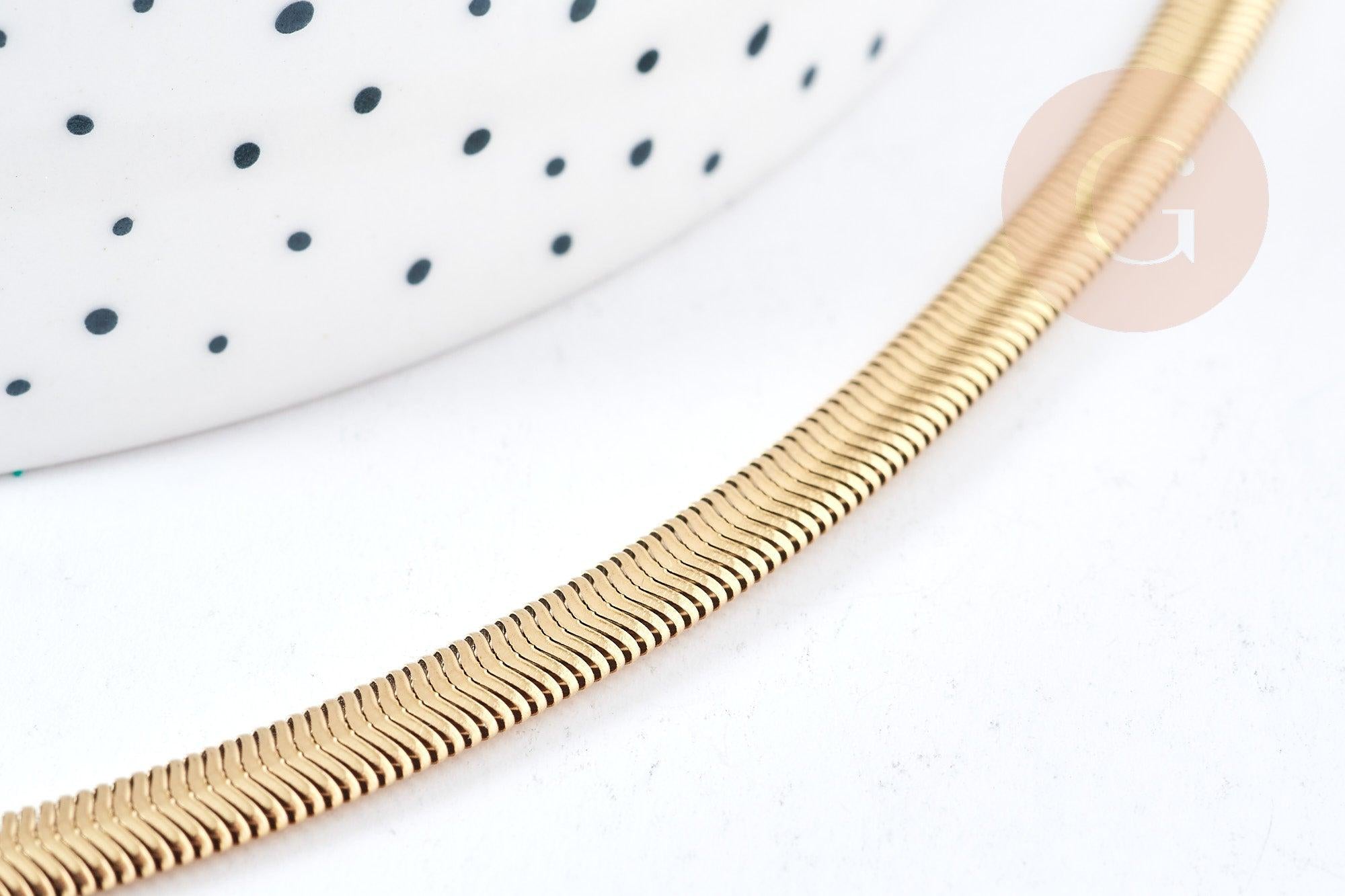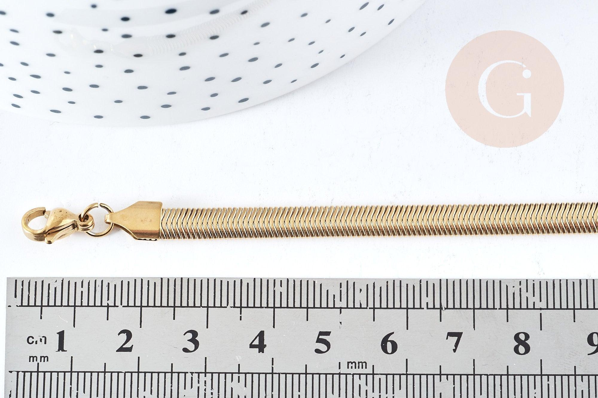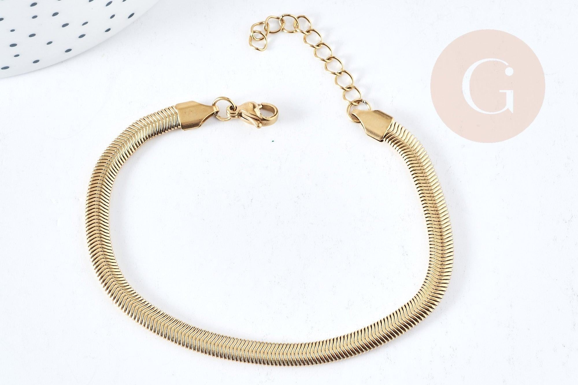 Apuesta por la elegancia con esta pulsera de malla de serpiente en acero inoxidable dorado . Esta pieza mixta es fácil de personalizar gracias a su anillo abierto, lo que permite añadir un charm para un look único y personalizado.