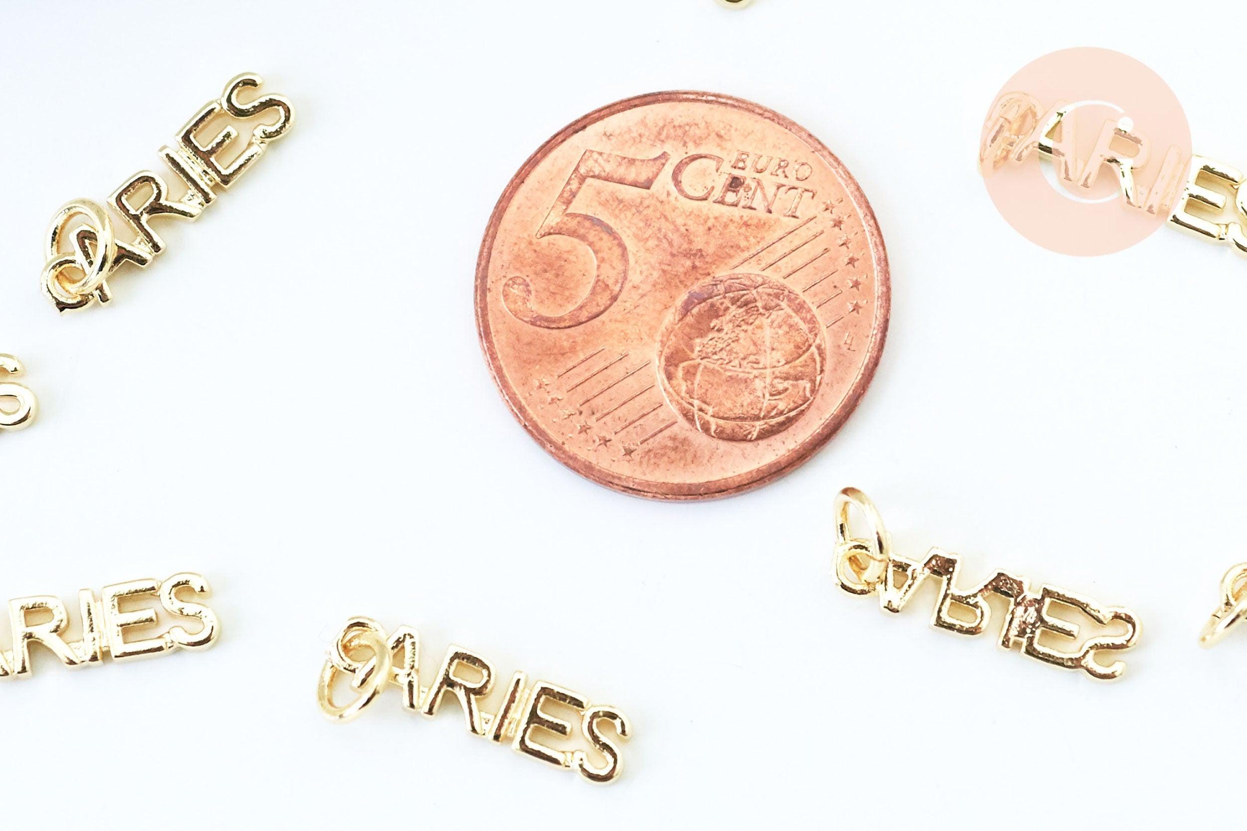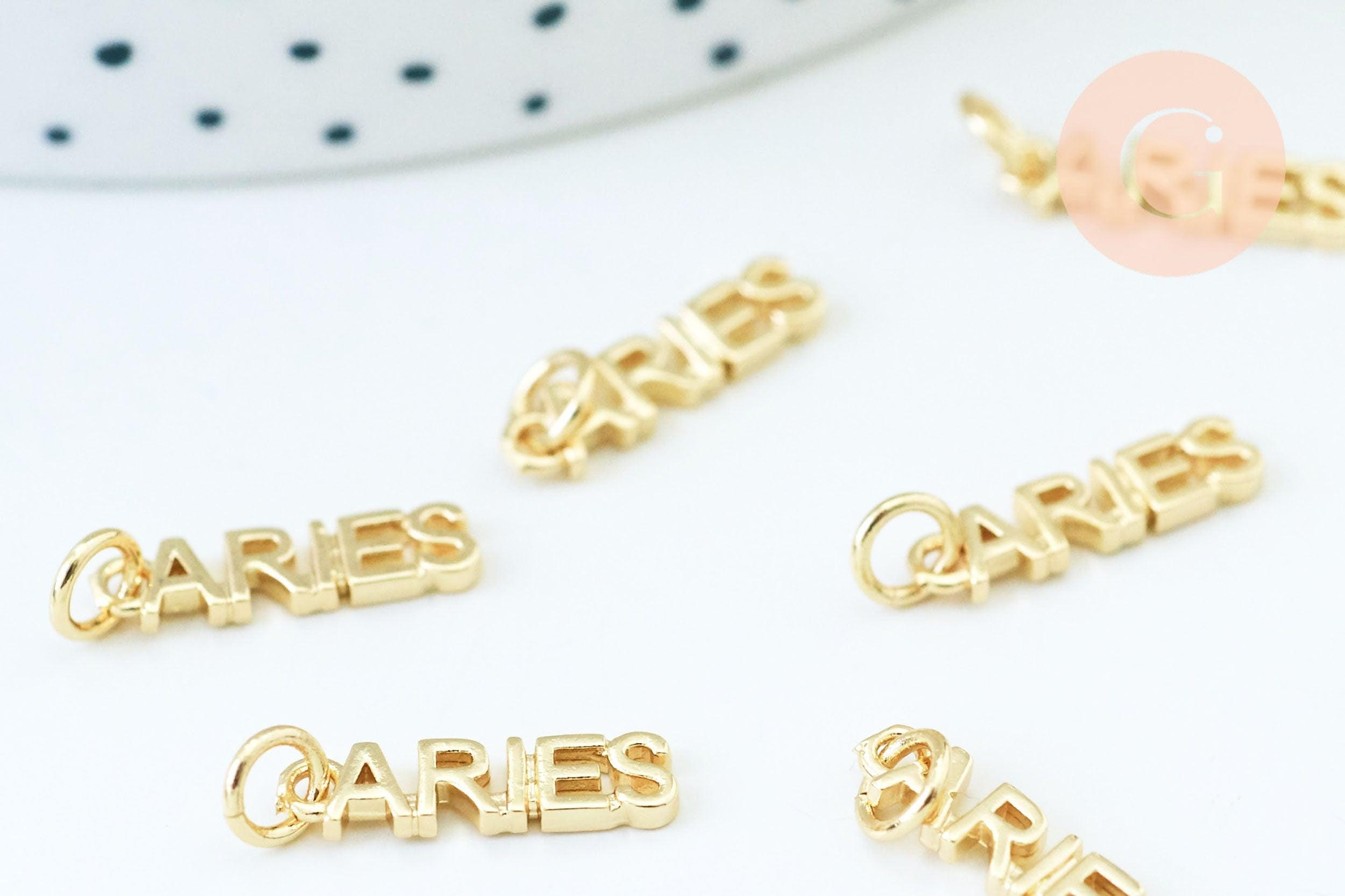 Charm Aries, latón bañado en oro de 18k, cristal, sin níquel, creación de joyería astrológica, colgante del horóscopo, 16mm, x1 G6049