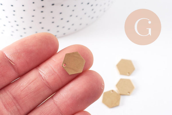 Breloque hexagone laiton brut 11mm, x10 (G10259)