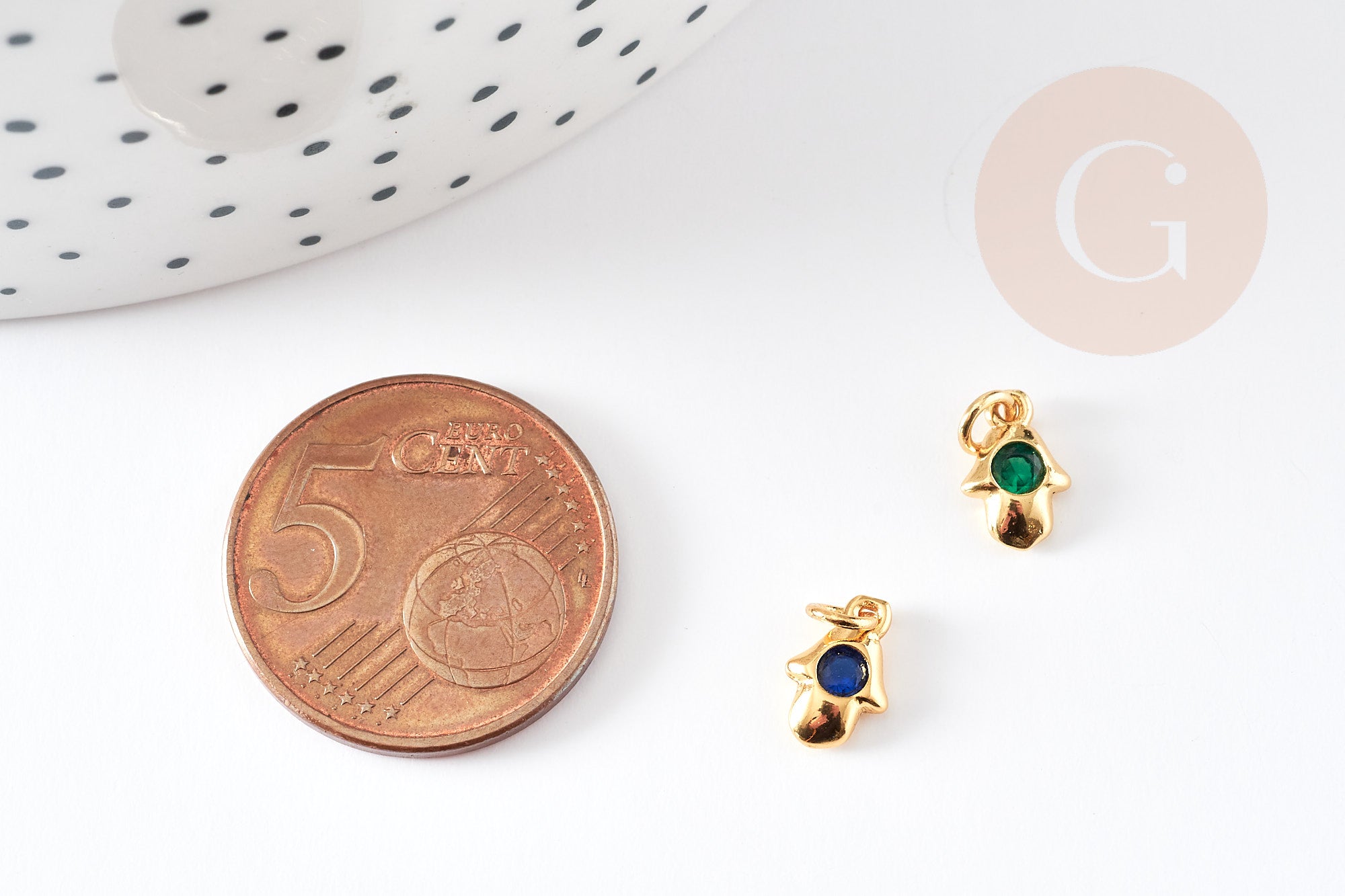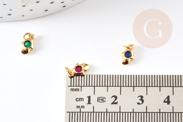 Charm mano de Fatma, latón bañado en oro de 18k, cristal de colores, creación de joyería, colgante religión, colgante circonita, 13mm, x1 G3478