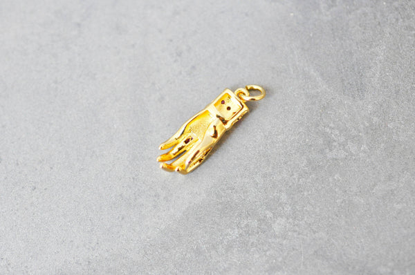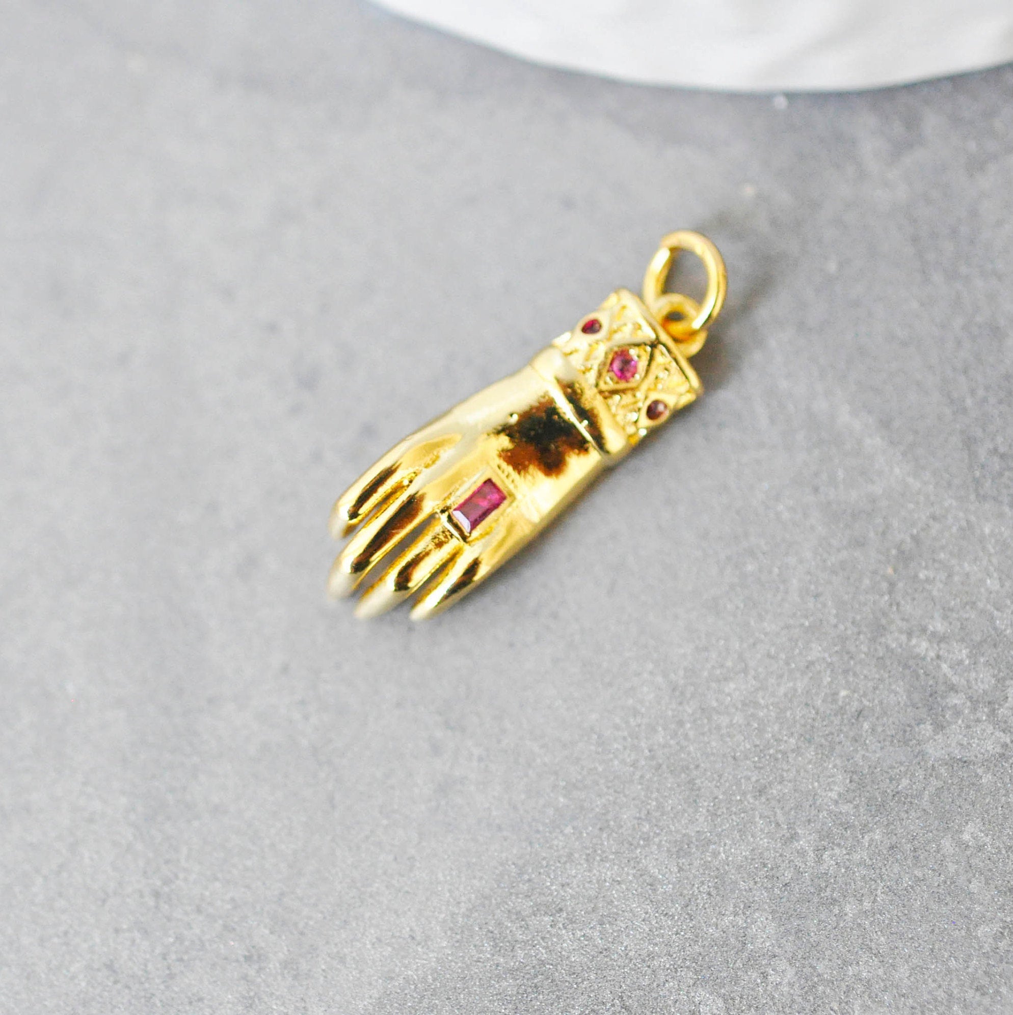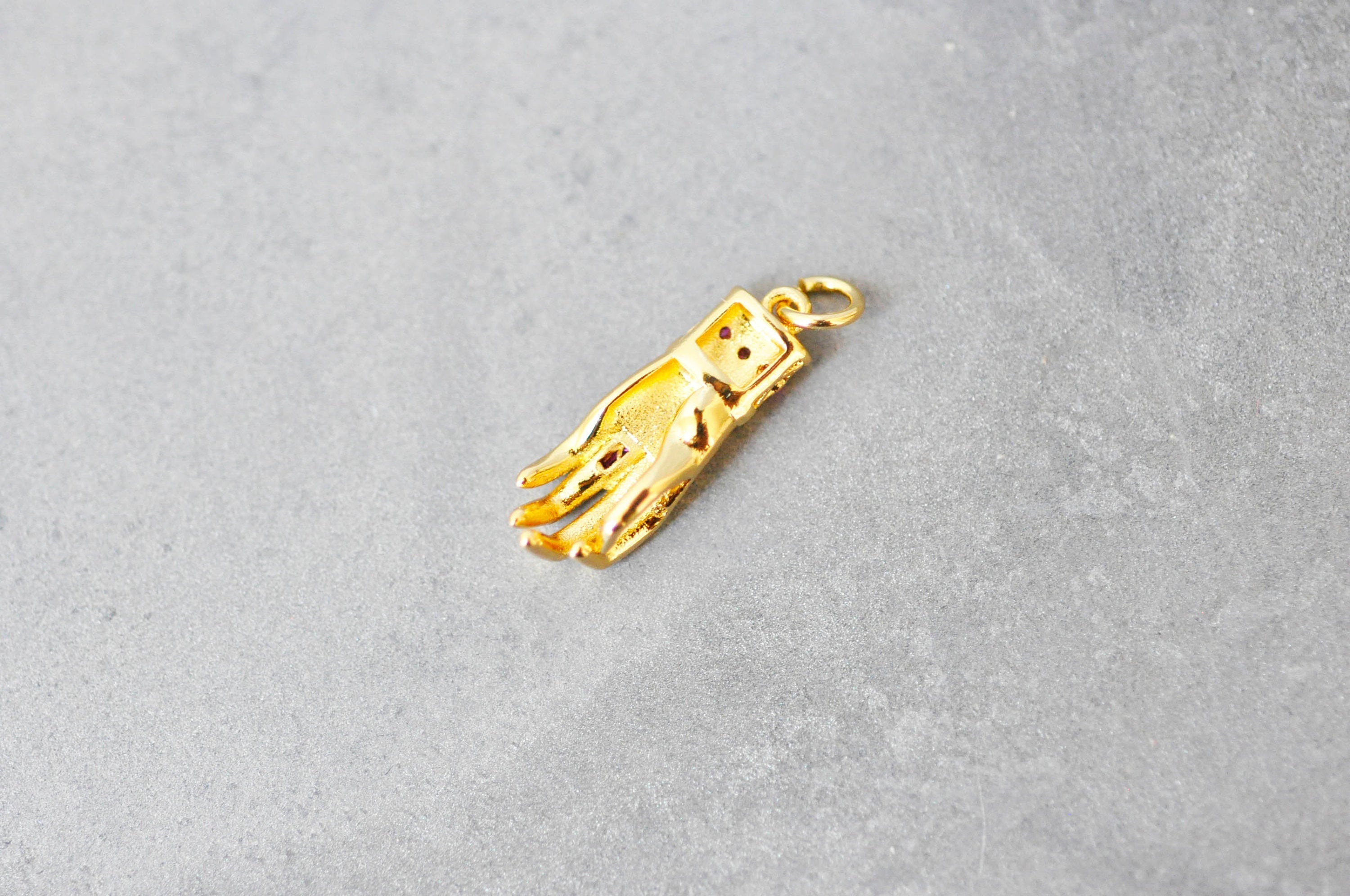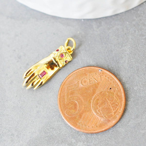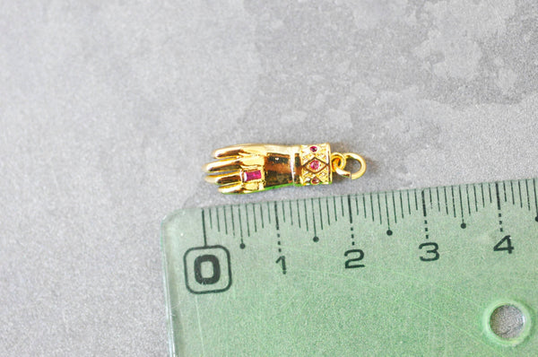 Para realizar magníficos collares, pendientes y pulseras, adopte esta mano, que representa un puño cerrado, de latón dorado, adornada con pequeñas circonitas blancas brillantes. Longitud: 20 mm Ancho: 6,5 mm Grosor: 5mm Agujero: 4,5x0,7 mm, 3 mm de diámetro interior....
