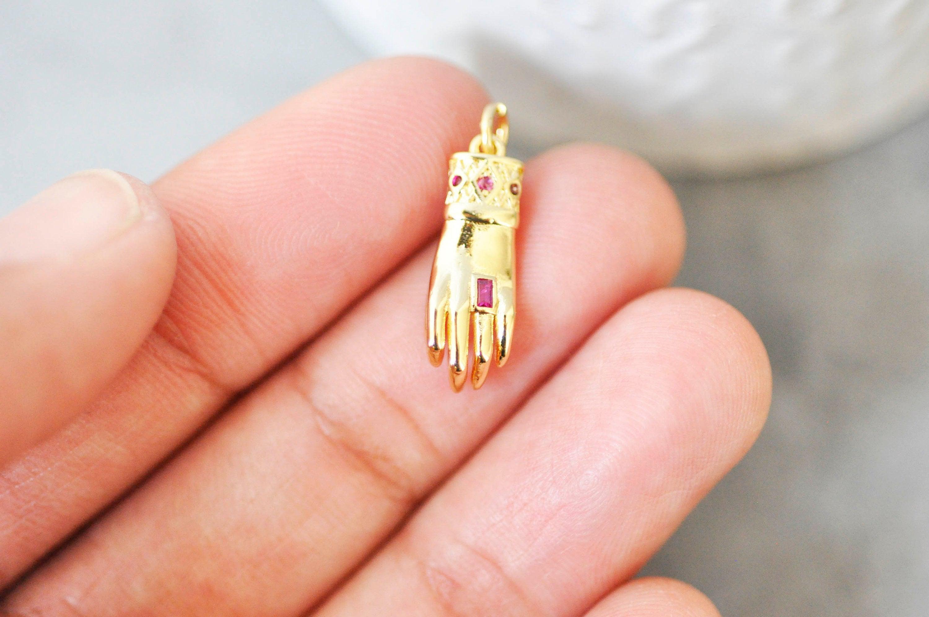 EP Dije de mano de latón chapado en oro de 18 quilates con cristal de circonita rosa, colgante de circonita para la creación de joyas, 20 mm, x1 G3334