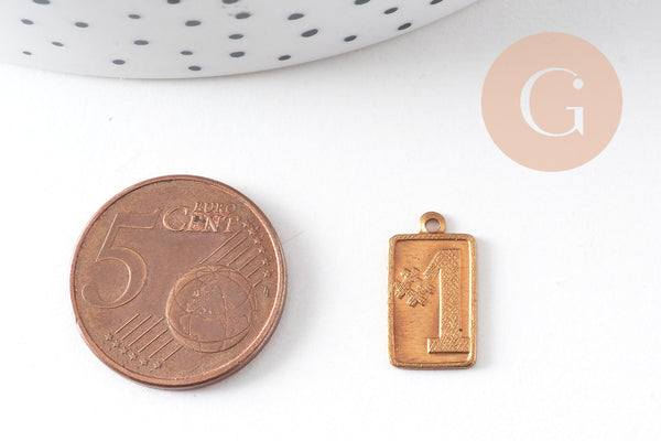 Encanto de medalla de latón, suministros de joyería, amuletos de latón crudo, amuleto de joyería, número 1, conjunto de 5, 15 mm