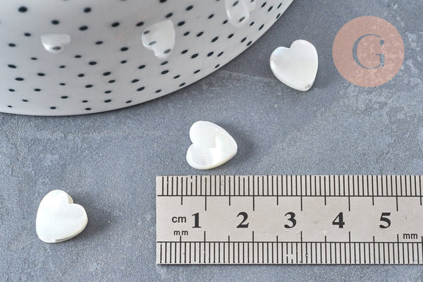 Cuentas de corazón de nácar blanco 10 mm, creación de joyas de nácar natural, alambre de 40 cm, x1 G6831