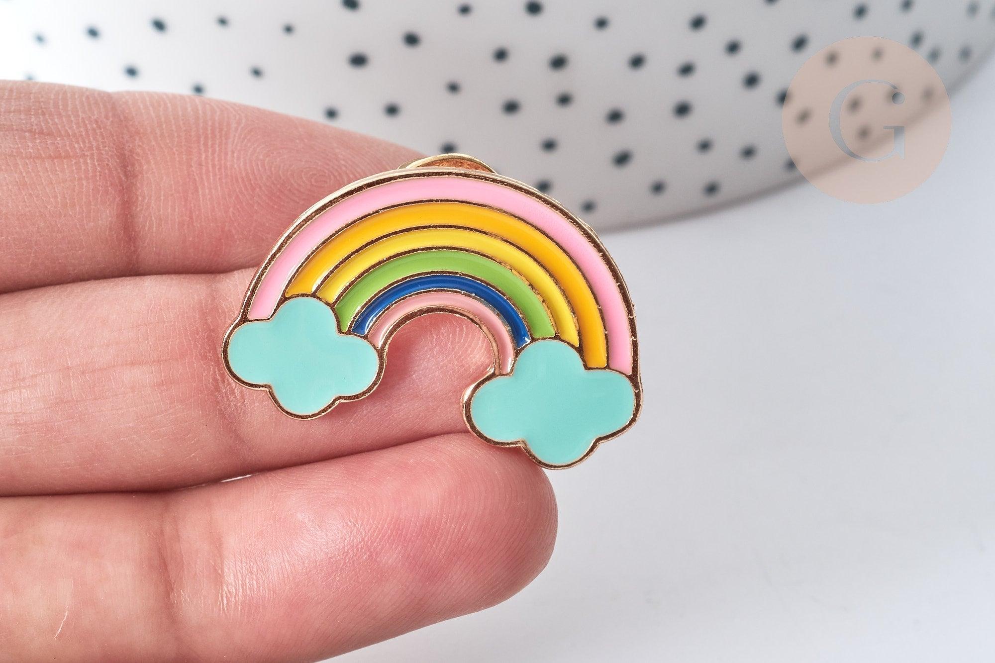 Este lindo pin agregará un toque lindo en solo unos momentos. ¿Por qué no cambiar un conjunto clásico de camisa y chaqueta incorporando este broche de arcoíris a tu look?